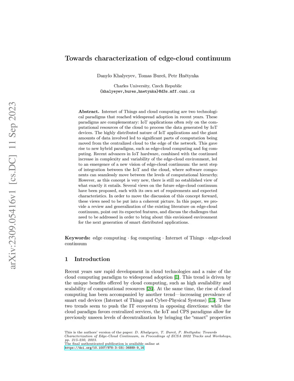 Internet of Things and cloud computing are two technological paradigms that reached widespread adoption in recent years. These paradigms are complementary: IoT applications often rely on the computational resources of the cloud to process the data generated by IoT devices. The highly distributed nature of IoT applications and the giant amounts of data involved led to significant parts of computation being moved from the centralized cloud to the edge of the network. This gave rise to new hybrid paradigms, such as edge-cloud computing and fog computing. Recent advances in IoT hardware, combined with the continued increase in complexity and variability of the edge-cloud environment, led to an emergence of a new vision of edge-cloud continuum: the next step of integration between the IoT and the cloud, where software components can seamlessly move between the levels of computational hierarchy. However, as this concept is very new, there is still no established view of what exactly it entails. Several views on the future edge-cloud continuum have been proposed, each with its own set of requirements and expected characteristics. In order to move the discussion of this concept forward, these views need to be put into a coherent picture. In this paper, we provide a review and generalization of the existing literature on edge-cloud continuum, point out its expected features, and discuss the challenges that need to be addressed in order to bring about this envisioned environment for the next generation of smart distributed applications.