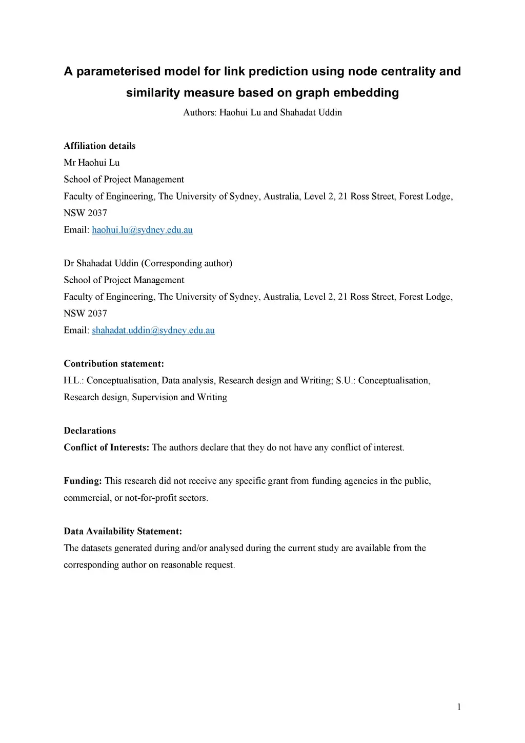A parameterised model for link prediction using node centrality and