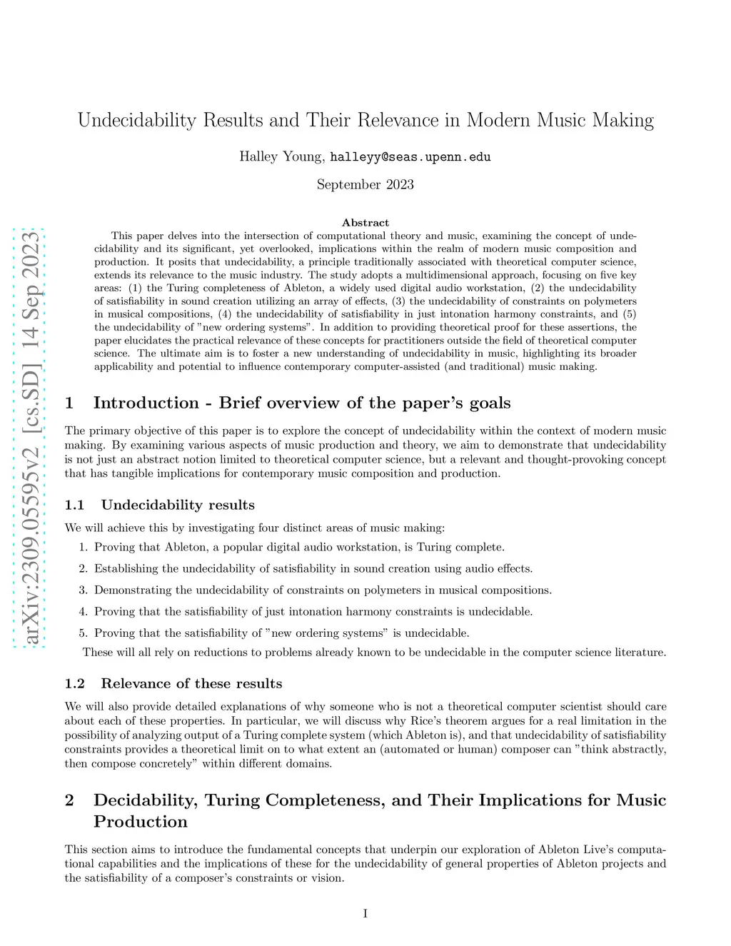 This paper delves into the intersection of computational theory and music, examining the concept of undecidability and its significant, yet overlooked, implications within the realm of modern music composition and production. It posits that undecidability, a principle traditionally associated with theoretical computer science, extends its relevance to the music industry. The study adopts a multidimensional approach, focusing on five key areas: (1) the Turing completeness of Ableton, a widely used digital audio workstation, (2) the undecidability of satisfiability in sound creation utilizing an array of effects, (3) the undecidability of constraints on polymeters in musical compositions, (4) the undecidability of satisfiability in just intonation harmony constraints, and (5) the undecidability of "new ordering systems". In addition to providing theoretical proof for these assertions, the paper elucidates the practical relevance of these concepts for practitioners outside the field of theoretical computer science. The ultimate aim is to foster a new understanding of undecidability in music, highlighting its broader applicability and potential to influence contemporary computer-assisted (and traditional) music making.