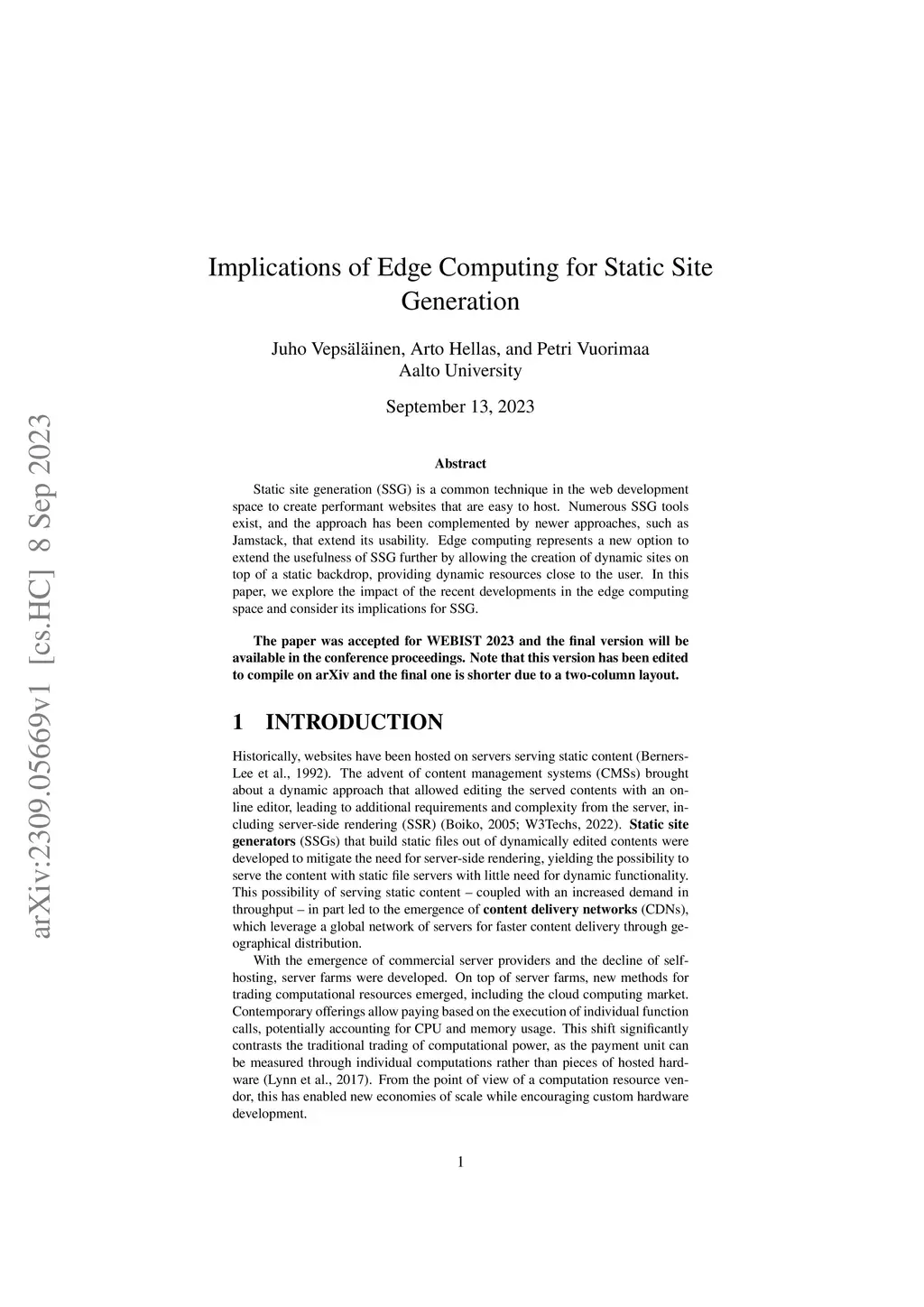 Implications of Edge Computing for Static Site Generation