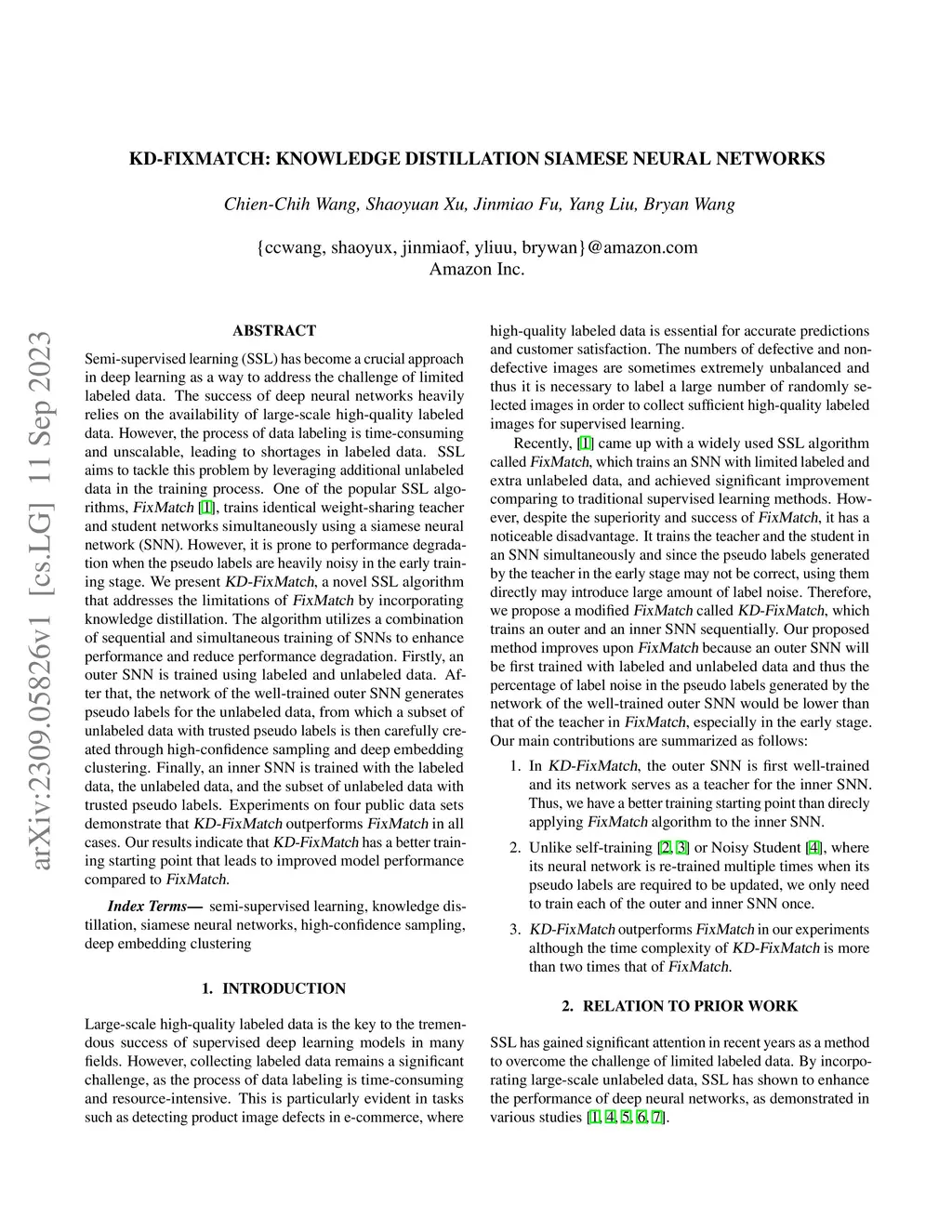 KD-FixMatch: Knowledge Distillation Siamese Neural Networks