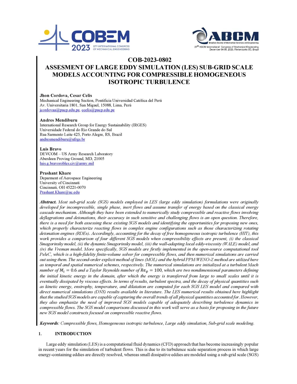 Assessment of Large Eddy Simulation (LES) Sub-grid Scale Models