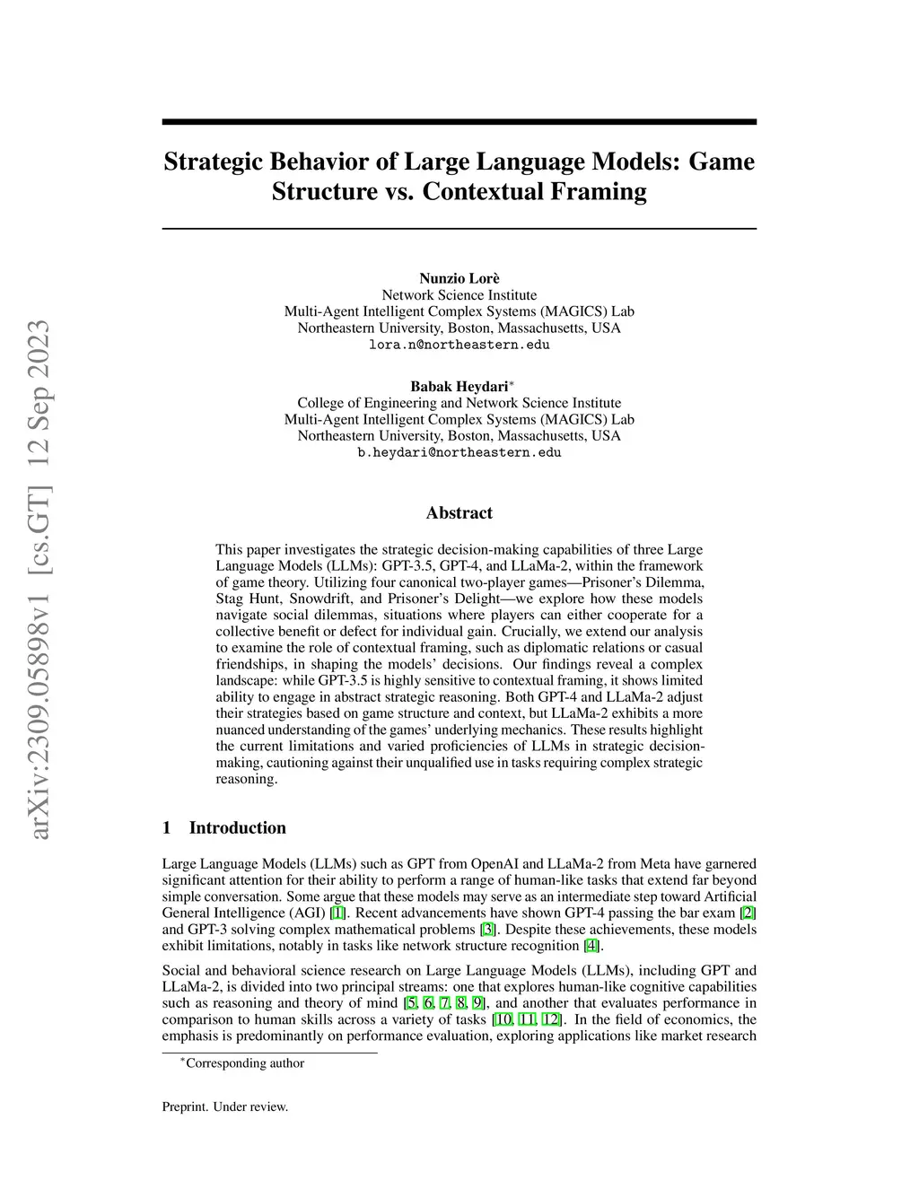 Strategic Behavior of Large Language Models: Game Structure vs.