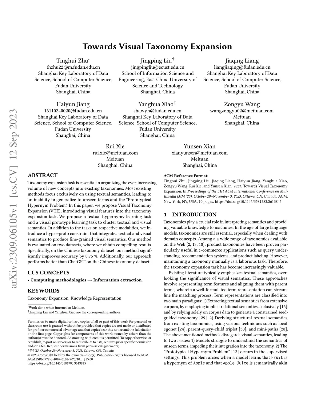 Taxonomy expansion task is essential in organizing the ever-increasing volume of new concepts into existing taxonomies. Most existing methods focus exclusively on using textual semantics, leading to an inability to generalize to unseen terms and the "Prototypical Hypernym Problem." In this paper, we propose Visual Taxonomy Expansion (VTE), introducing visual features into the taxonomy expansion task. We propose a textual hypernymy learning task and a visual prototype learning task to cluster textual and visual semantics. In addition to the tasks on respective modalities, we introduce a hyper-proto constraint that integrates textual and visual semantics to produce fine-grained visual semantics. Our method is evaluated on two datasets, where we obtain compelling results. Specifically, on the Chinese taxonomy dataset, our method significantly improves accuracy by 8.75 %. Additionally, our approach performs better than ChatGPT on the Chinese taxonomy dataset.