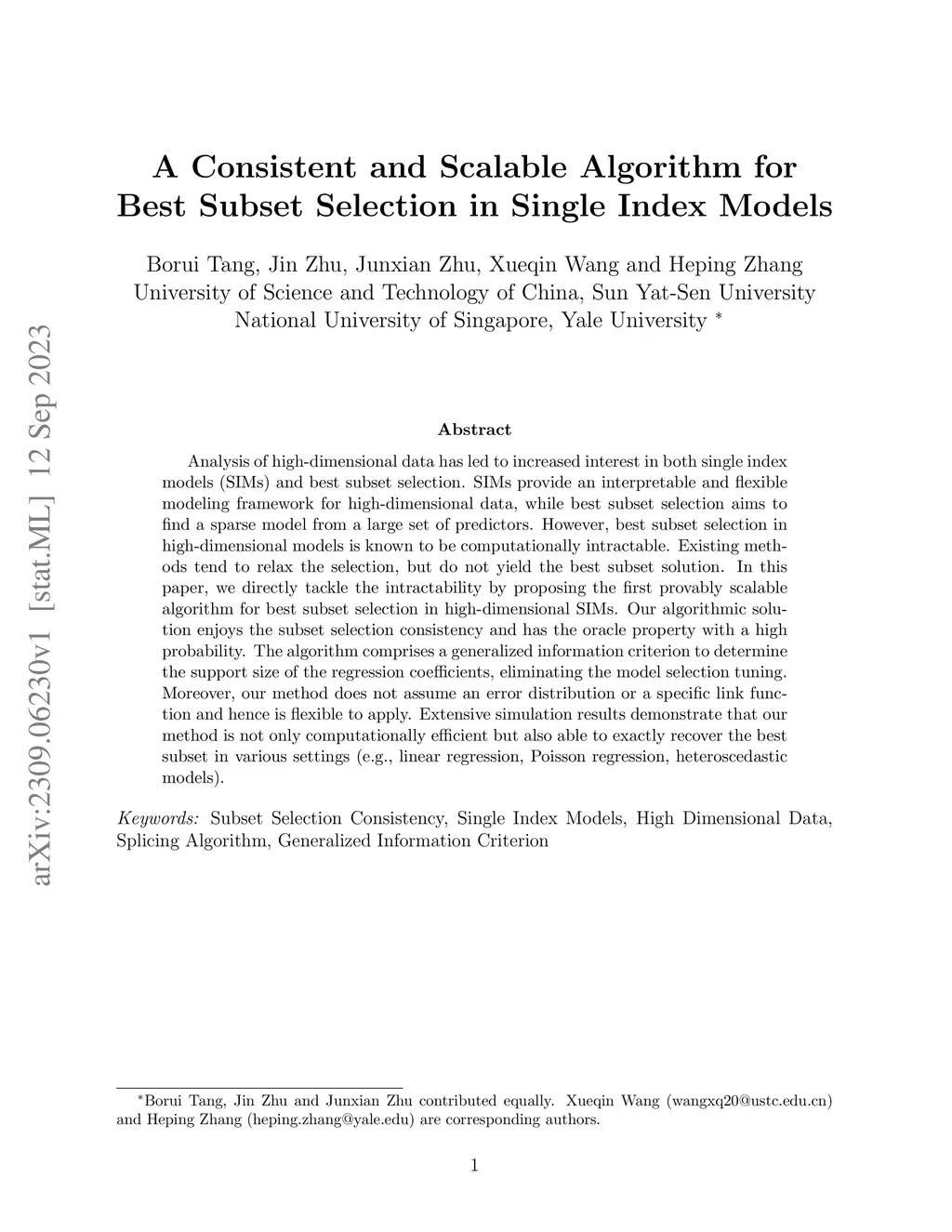 Analysis of high-dimensional data has led to increased interest in both single index models (SIMs) and the best-subset selection. SIMs provide an interpretable and flexible modeling framework for high-dimensional data, while the best-subset selection aims to find a sparse model from a large set of predictors. However, the best-subset selection in high-dimensional models is known to be computationally intractable. Existing proxy algorithms are appealing but do not yield the bestsubset solution. In this paper, we directly tackle the intractability by proposing a provably scalable algorithm for the best-subset selection in high-dimensional SIMs. We directly proved the subset selection consistency and oracle property for our algorithmic solution, distinguishing it from other state-of-the-art support recovery methods in SIMs. The algorithm comprises a generalized information criterion to determine the support size of the regression coefficients, eliminating the model selection tuning. Moreover, our method does not assume an error distribution or a specific link function and hence is flexible to apply. Extensive simulation results demonstrate that our method is not only computationally efficient but also able to exactly recover the best subset in various settings (e.g., linear regression, Poisson regression, heteroscedastic models).