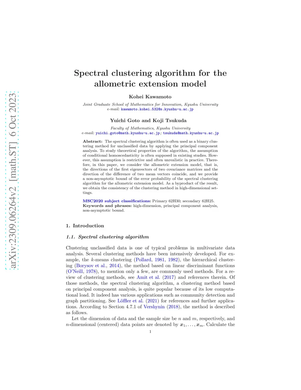 Spectral clustering algorithm for the allometric extension model
