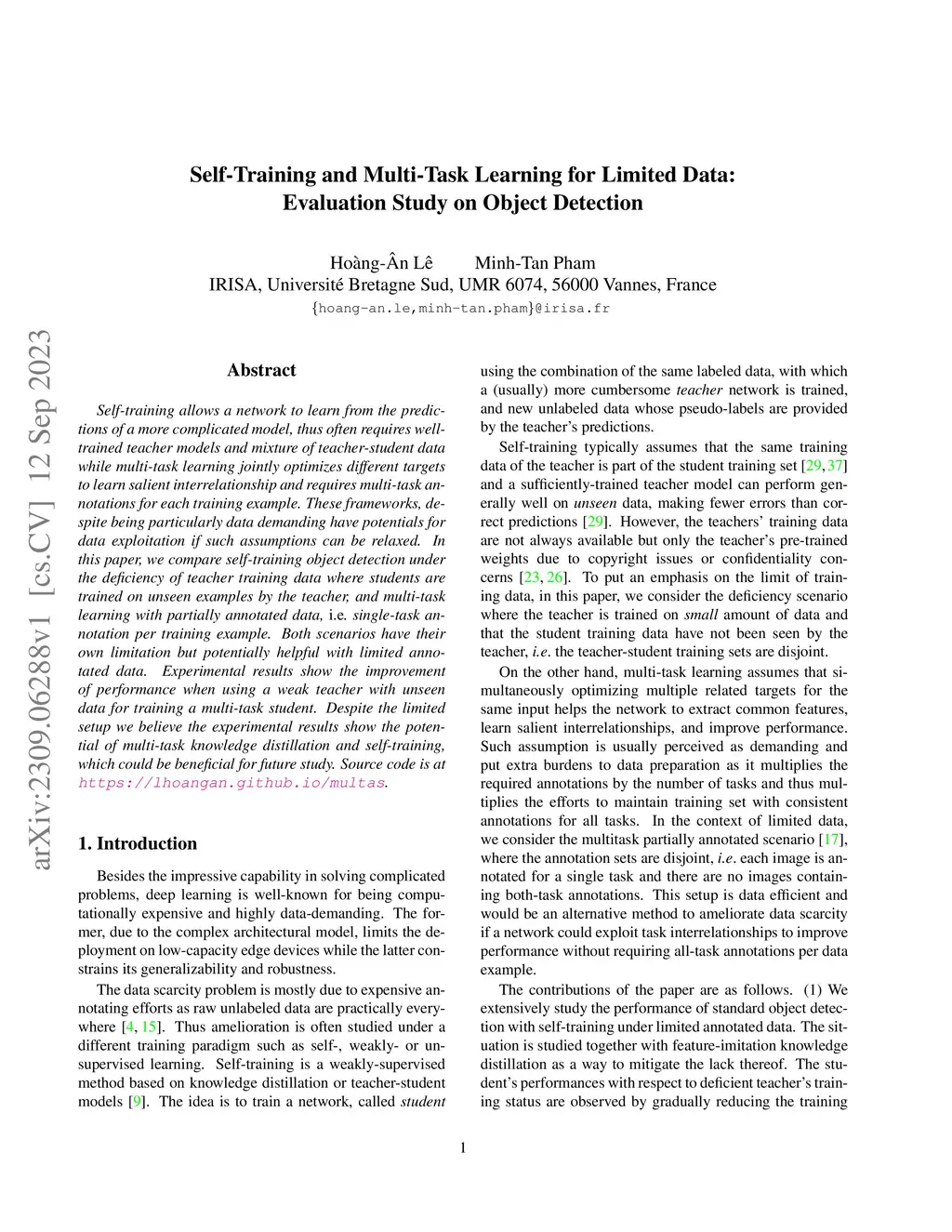 Self-training allows a network to learn from the predictions of a more complicated model, thus often requires well-trained teacher models and mixture of teacher-student data while multi-task learning jointly optimizes different targets to learn salient interrelationship and requires multi-task annotations for each training example. These frameworks, despite being particularly data demanding have potentials for data exploitation if such assumptions can be relaxed. In this paper, we compare self-training object detection under the deficiency of teacher training data where students are trained on unseen examples by the teacher, and multi-task learning with partially annotated data, i.e. single-task annotation per training example. Both scenarios have their own limitation but potentially helpful with limited annotated data. Experimental results show the improvement of performance when using a weak teacher with unseen data for training a multi-task student. Despite the limited setup we believe the experimental results show the potential of multi-task knowledge distillation and self-training, which could be beneficial for future study. Source code is at https://lhoangan.github.io/multas.