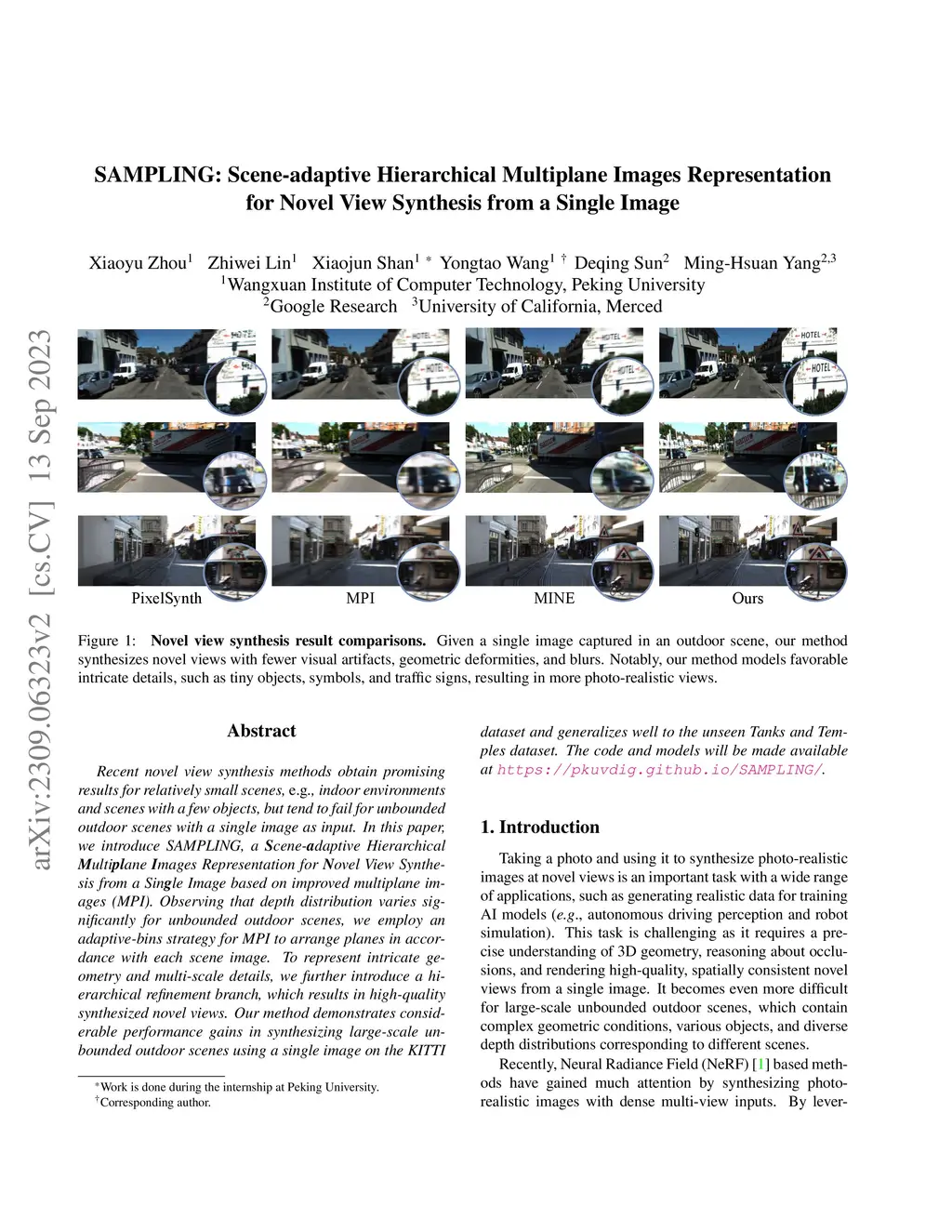 SAMPLING: Scene-adaptive Hierarchical Multiplane Images Representation