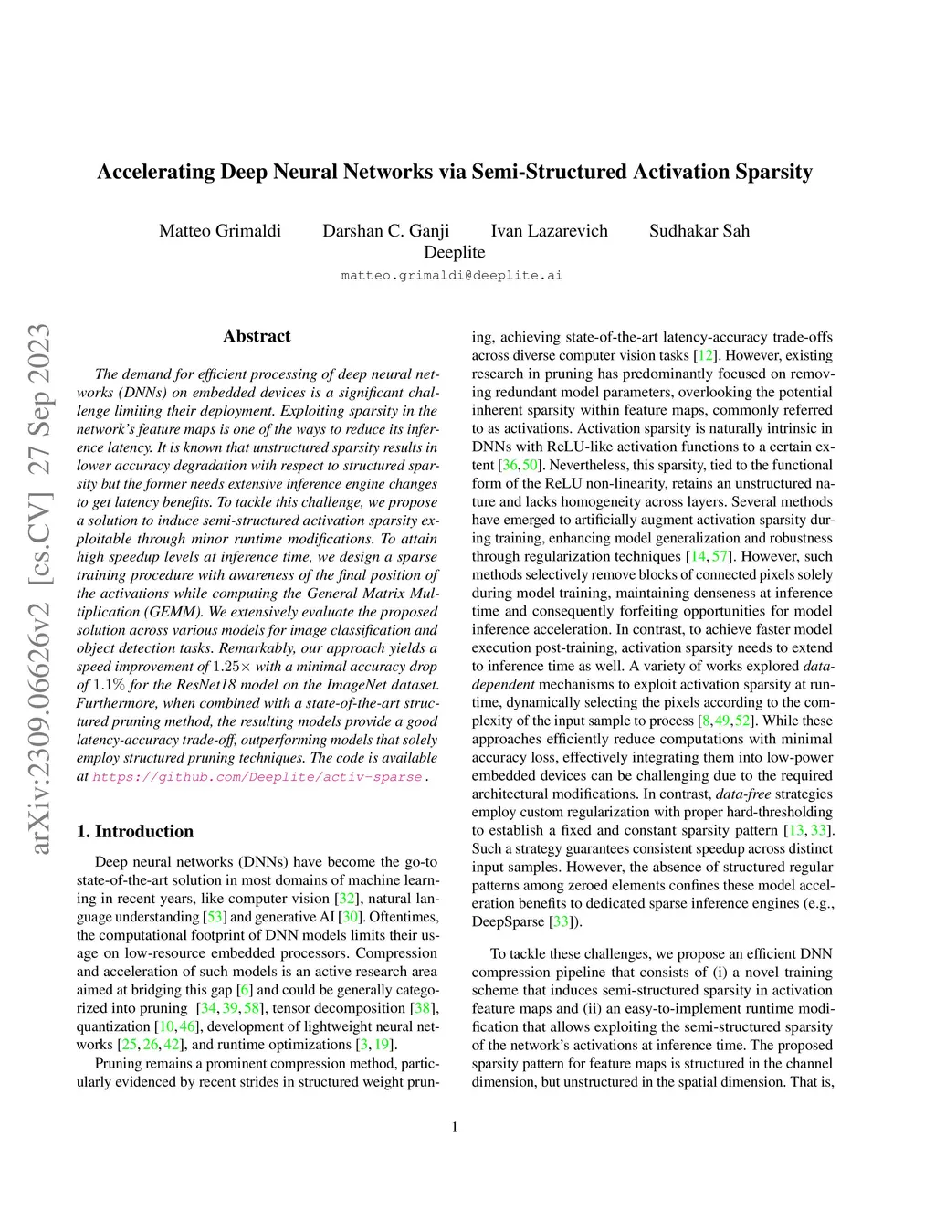 Accelerating Deep Neural Networks via Semi-Structured Activation