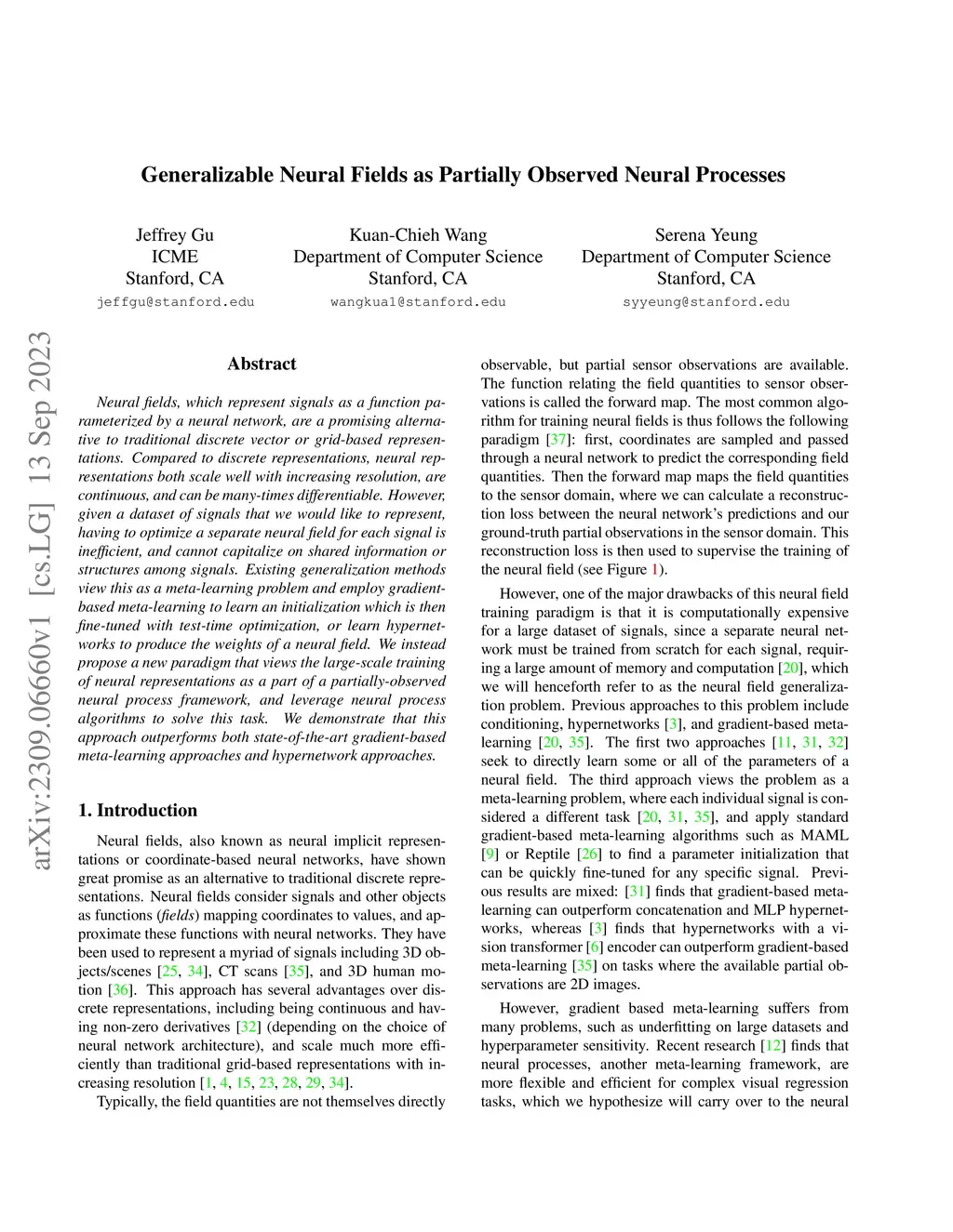Generalizable Neural Fields as Partially Observed Neural Processes