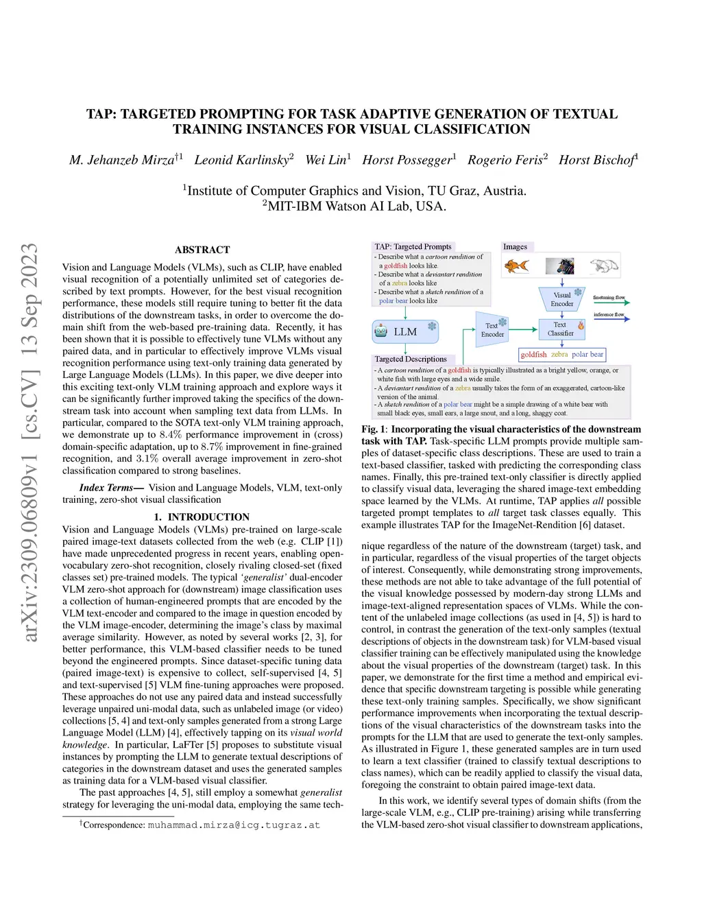 Vision and Language Models (VLMs), such as CLIP, have enabled visual recognition of a potentially unlimited set of categories described by text prompts. However, for the best visual recognition performance, these models still require tuning to better fit the data distributions of the downstream tasks, in order to overcome the domain shift from the web-based pre-training data. Recently, it has been shown that it is possible to effectively tune VLMs without any paired data, and in particular to effectively improve VLMs visual recognition performance using text-only training data generated by Large Language Models (LLMs). In this paper, we dive deeper into this exciting text-only VLM training approach and explore ways it can be significantly further improved taking the specifics of the downstream task into account when sampling text data from LLMs. In particular, compared to the SOTA text-only VLM training approach, we demonstrate up to 8.4% performance improvement in (cross) domain-specific adaptation, up to 8.7% improvement in fine-grained recognition, and 3.1% overall average improvement in zero-shot classification compared to strong baselines.