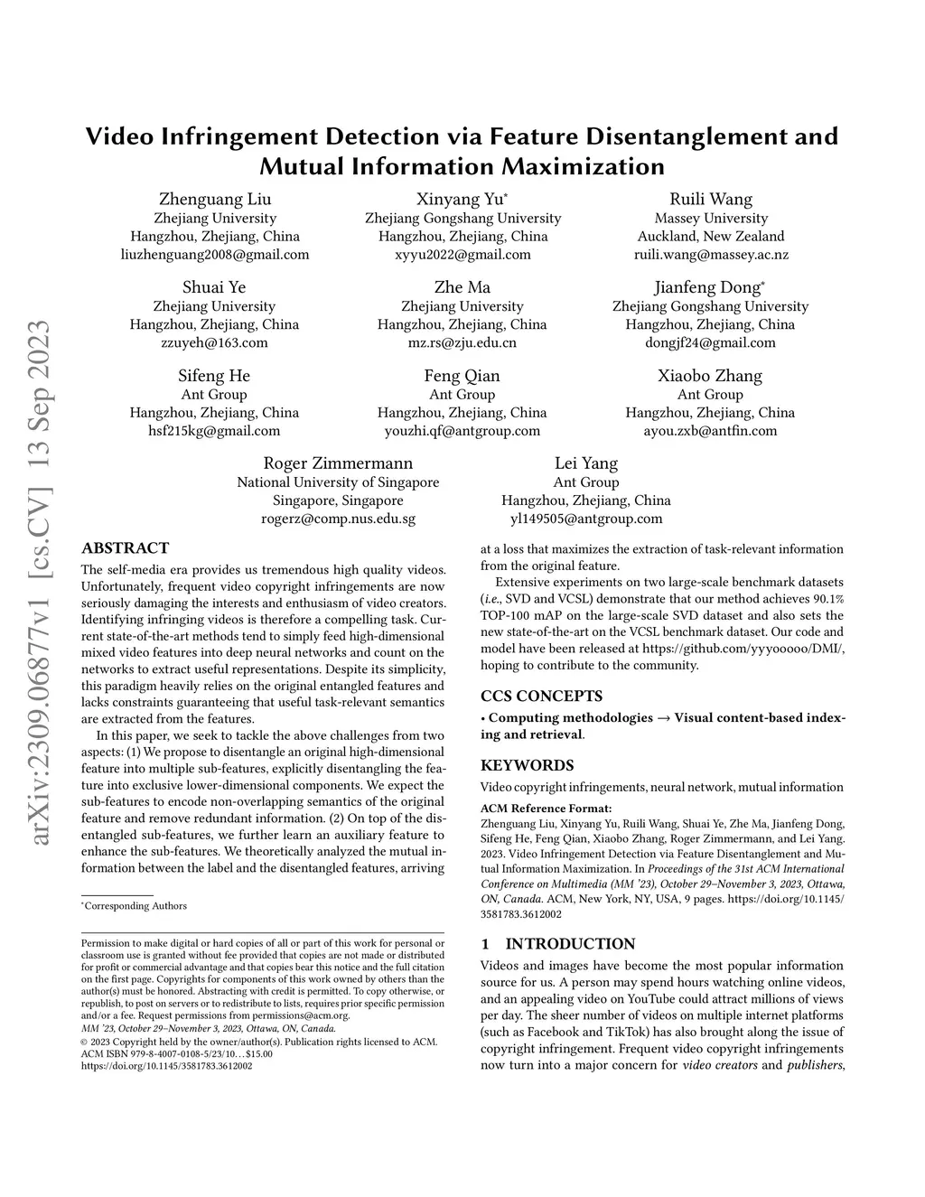 Video Infringement Detection via Feature Disentanglement and Mutual
