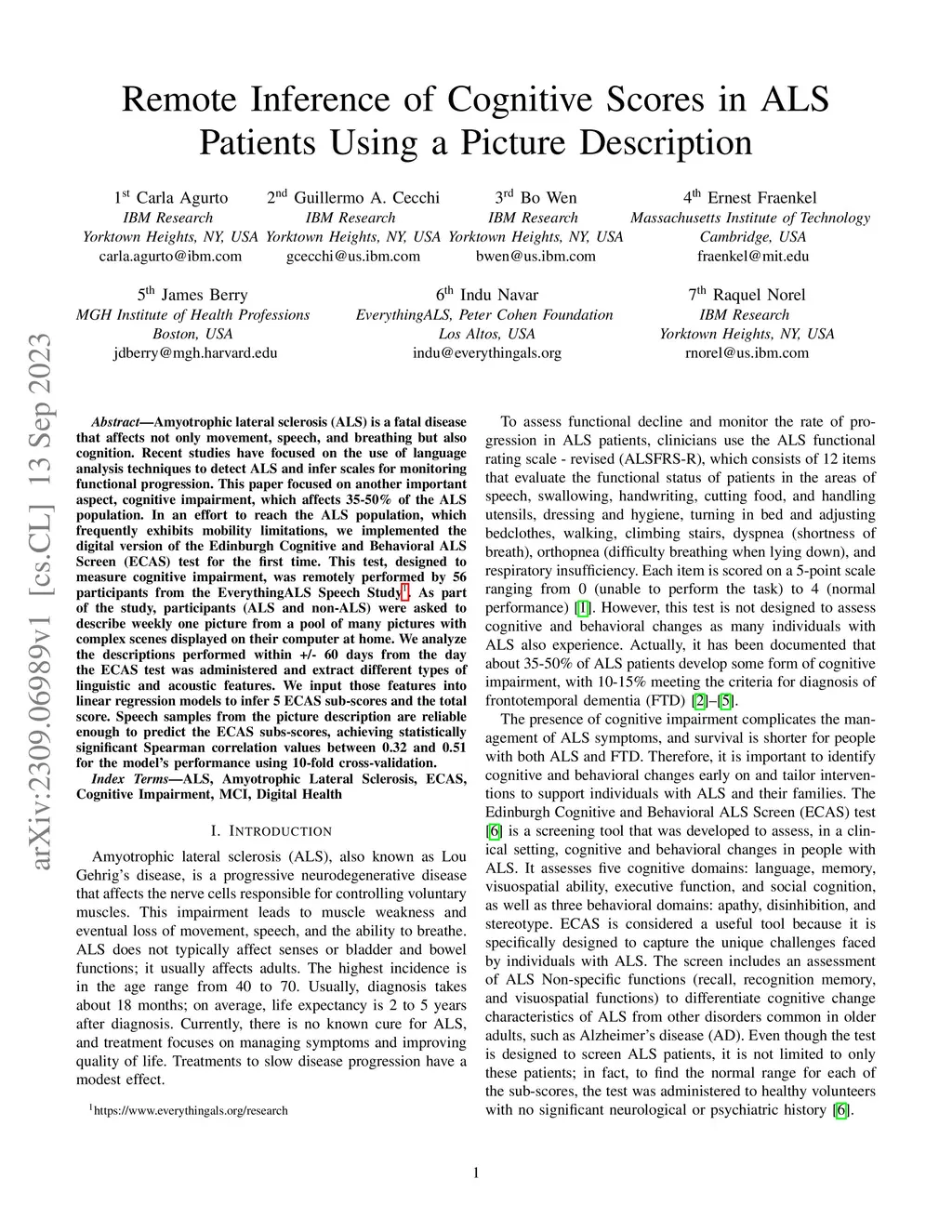 Remote Inference of Cognitive Scores in ALS Patients Using a Picture