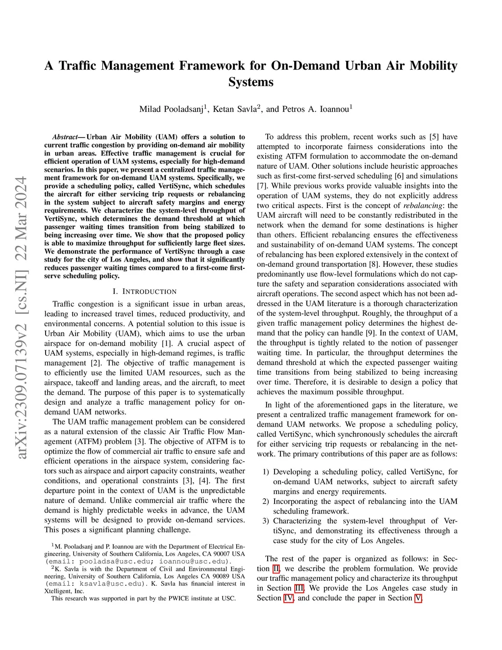 A Traffic Management Framework for On-Demand Urban Air Mobility Systems