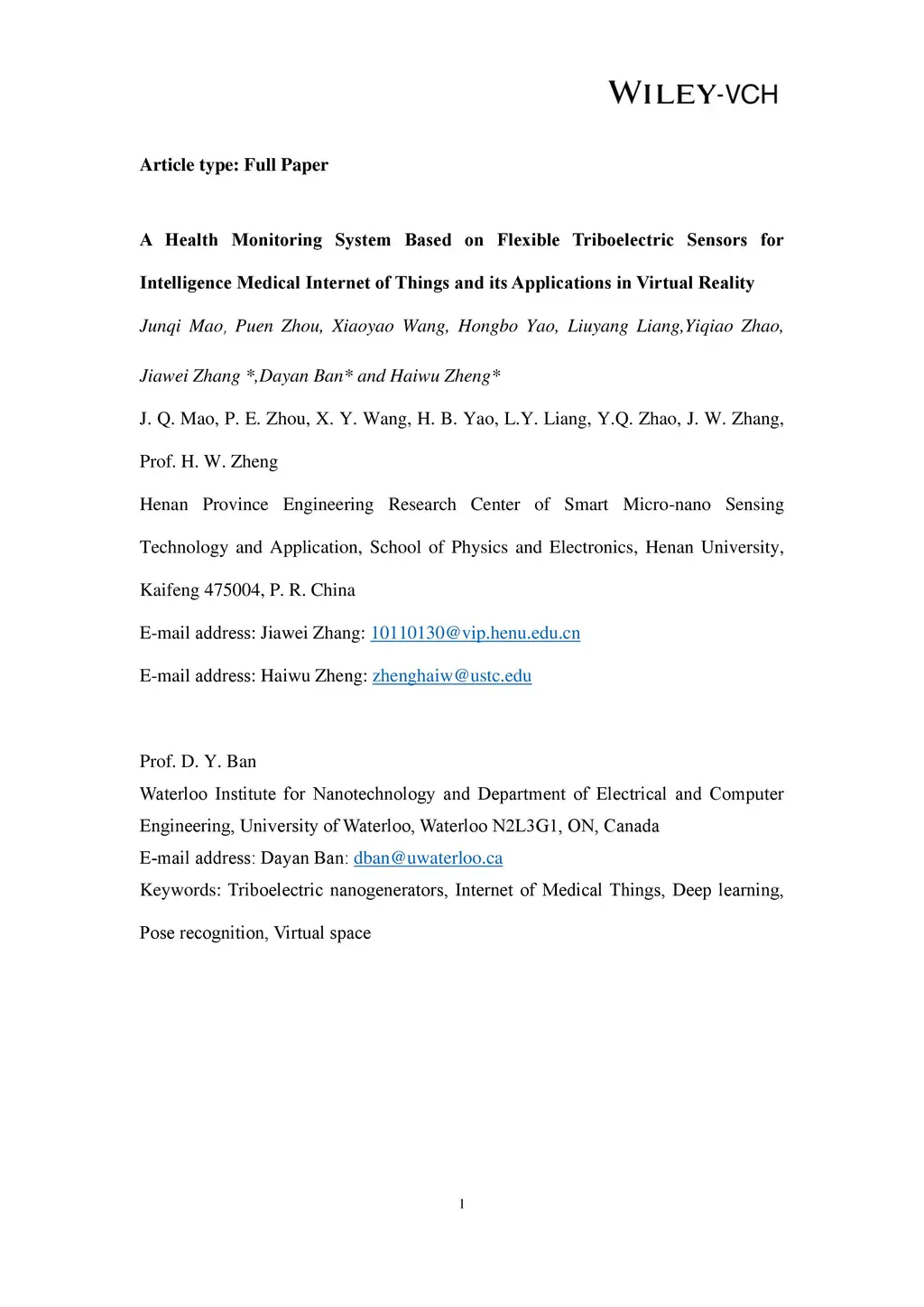 A Health Monitoring System Based on Flexible Triboelectric Sensors for