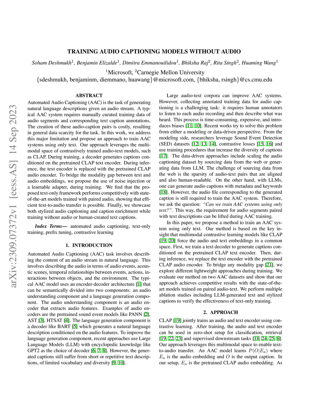 Training Audio Captioning Models without Audio