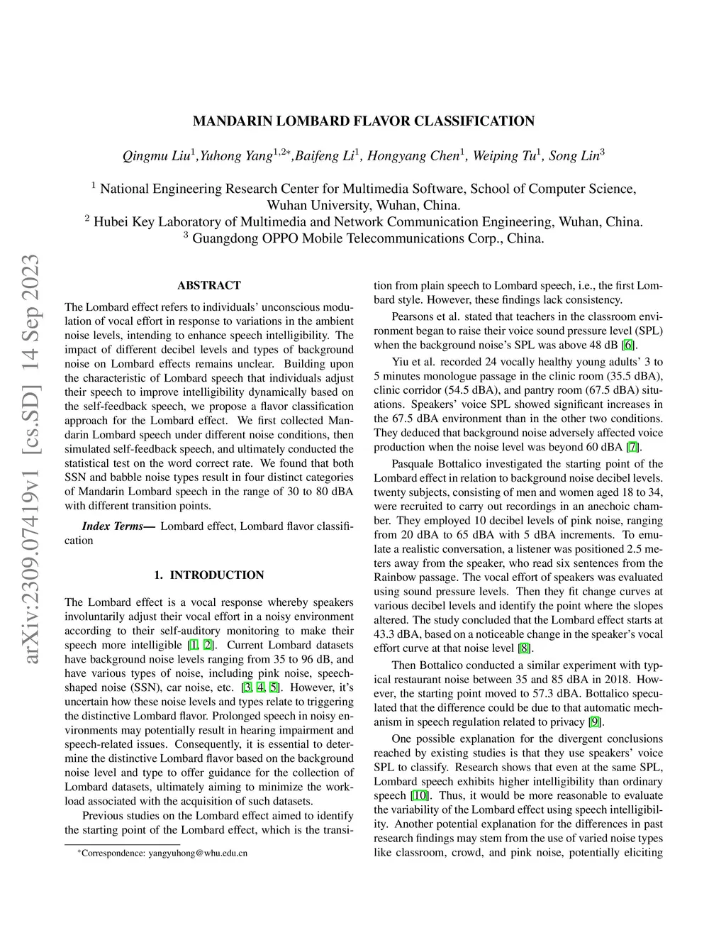 Mandarin Lombard Flavor Classification