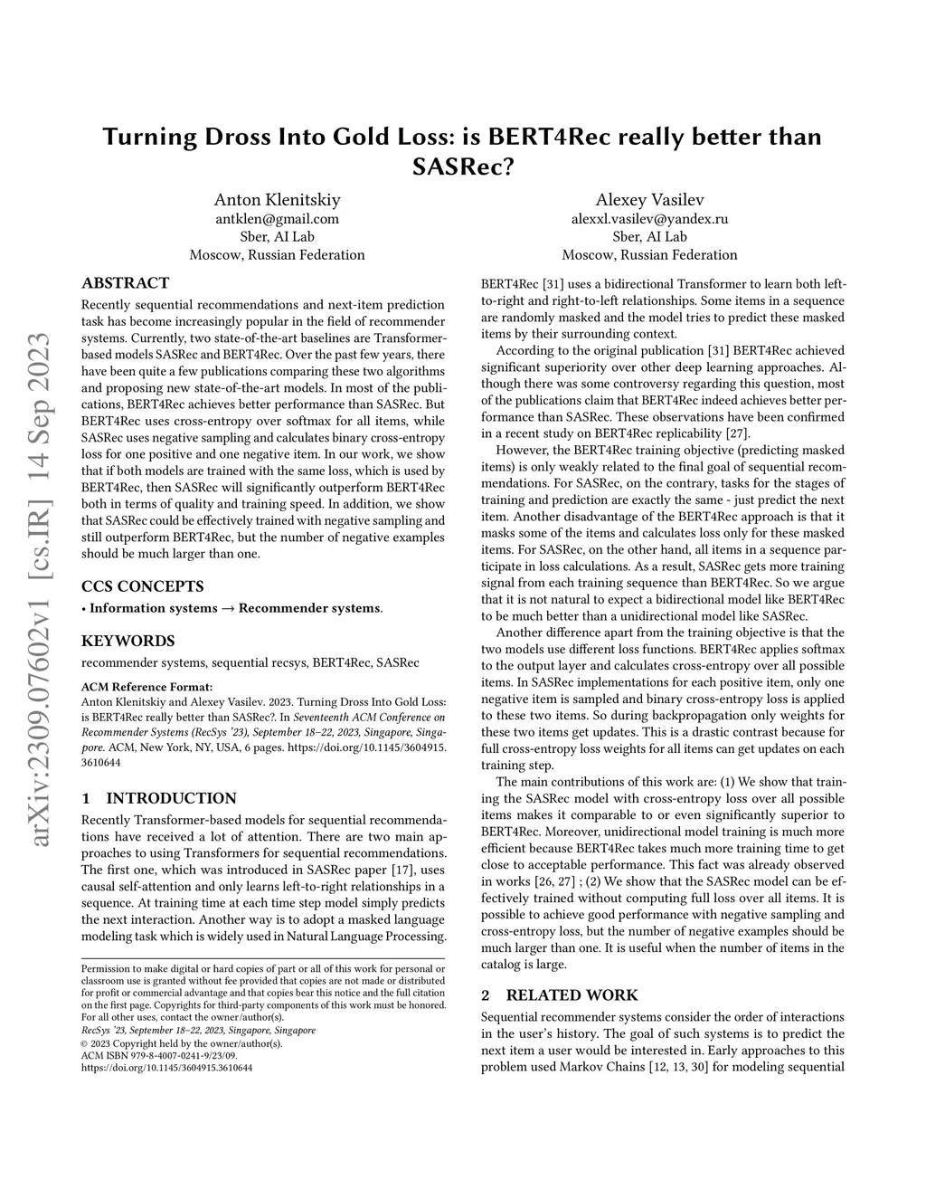 Turning Dross Into Gold Loss: is BERT4Rec really better than SASRec?
