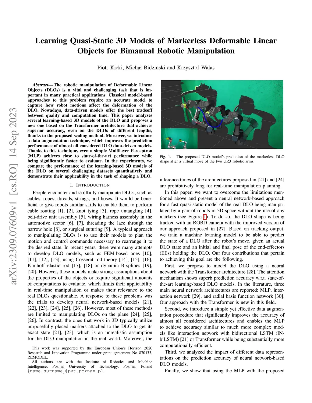 Learning Quasi-Static 3D Models of Markerless Deformable Linear Objects