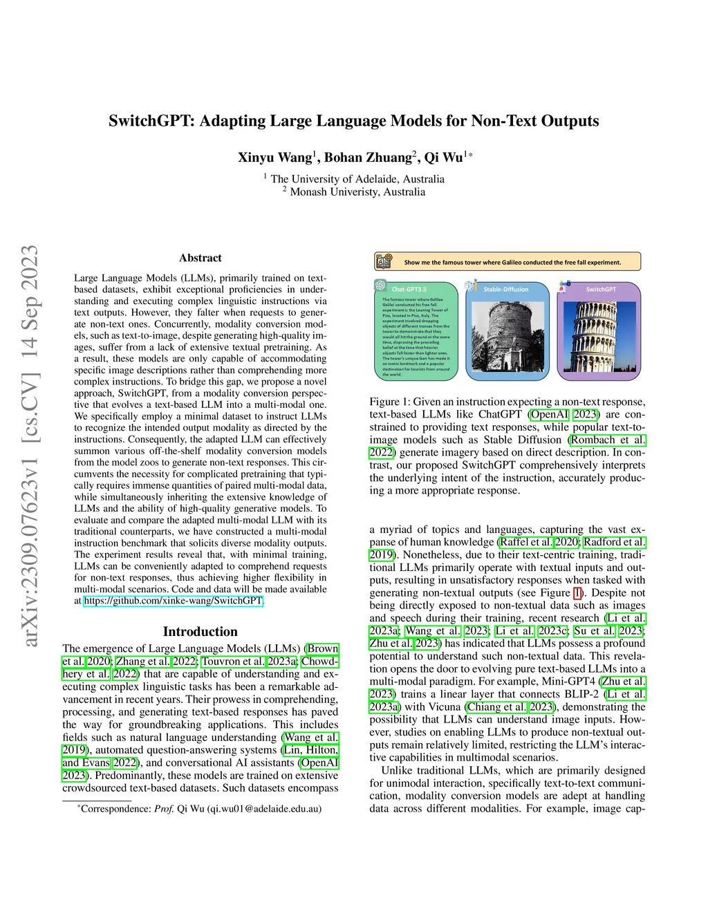 SwitchGPT: Adapting Large Language Models for Non-Text Outputs