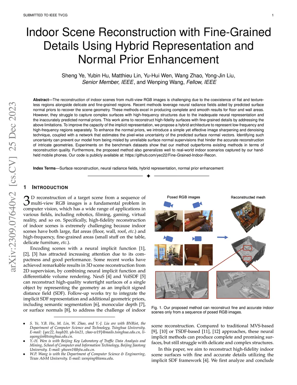 Indoor Scene Reconstruction with Fine-Grained Details Using Hybrid