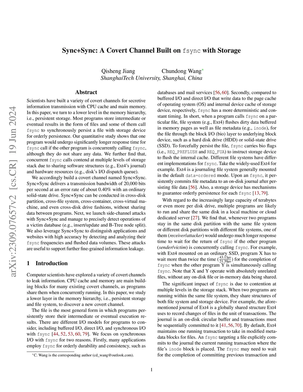 Sync+Sync: A Covert Channel Built on fsync with Storage