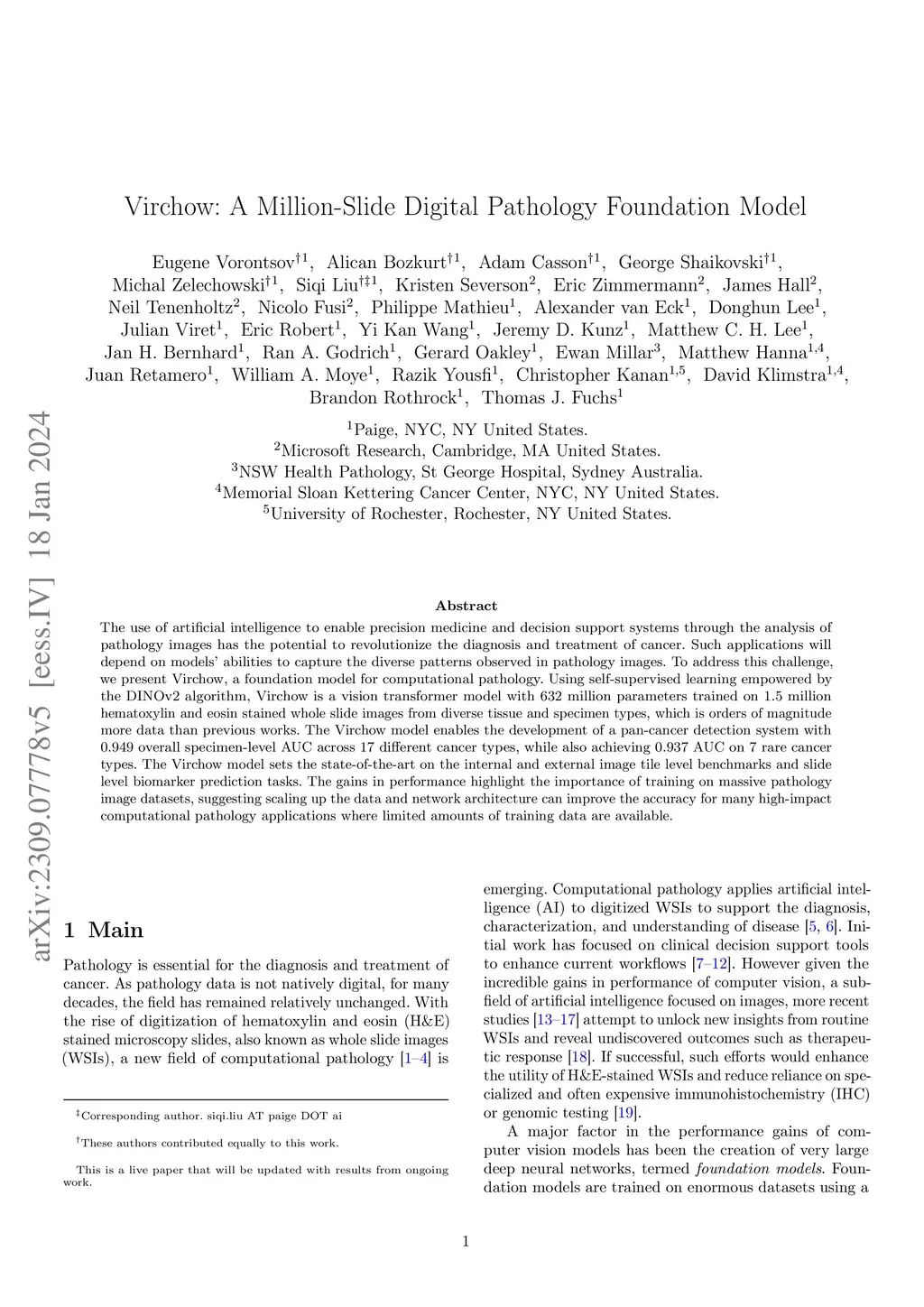 Virchow: A Million-Slide Digital Pathology Foundation Model