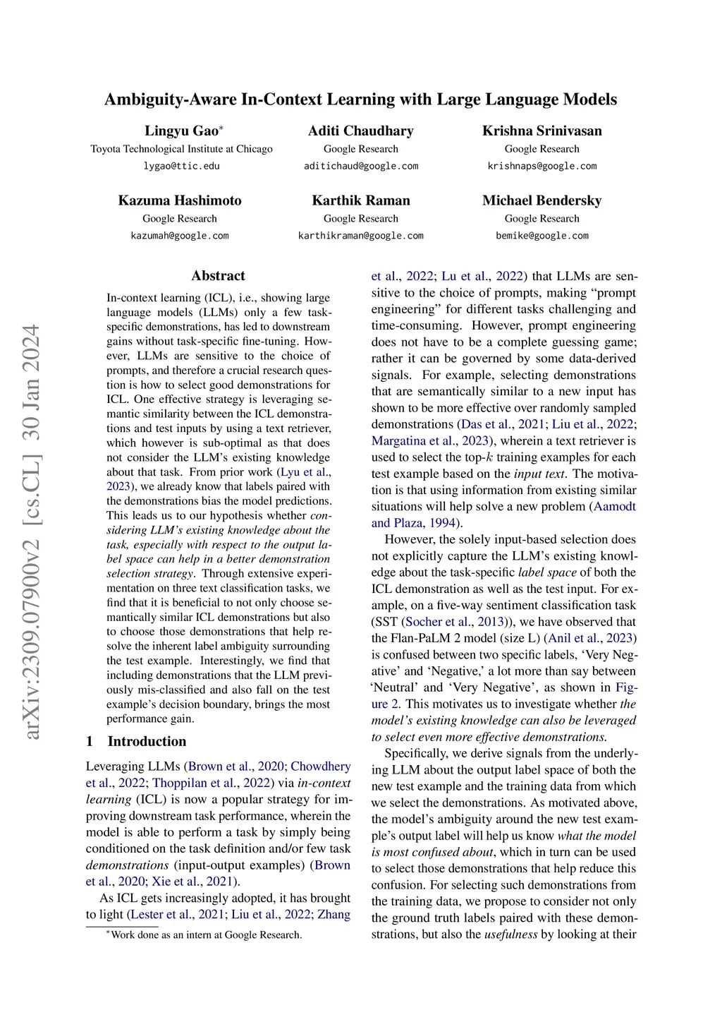Ambiguity-Aware In-Context Learning with Large Language Models