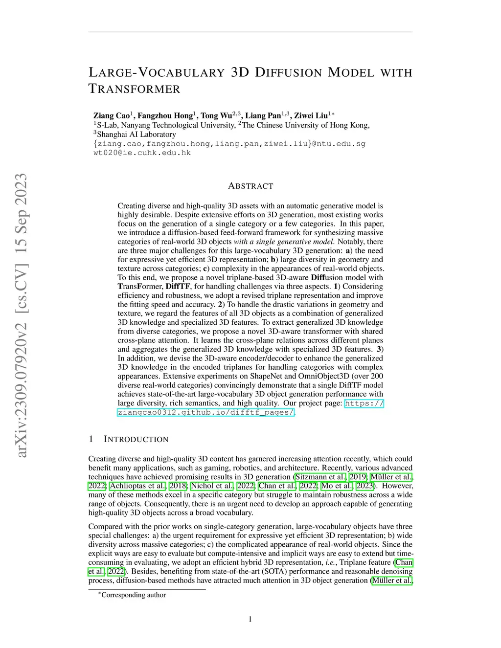 Large-Vocabulary 3D Diffusion Model with Transformer
