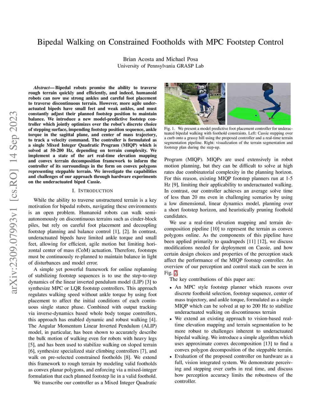 Bipedal Walking on Constrained Footholds with MPC Footstep Control