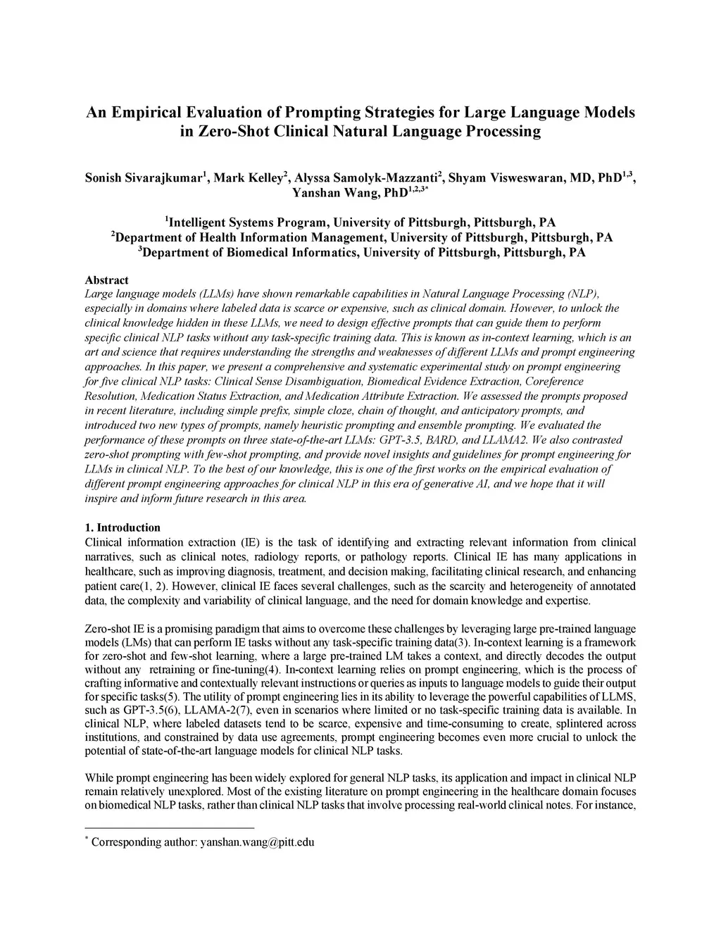 Large language models (LLMs) have shown remarkable capabilities in Natural Language Processing (NLP), especially in domains where labeled data is scarce or expensive, such as clinical domain. However, to unlock the clinical knowledge hidden in these LLMs, we need to design effective prompts that can guide them to perform specific clinical NLP tasks without any task-specific training data. This is known as in-context learning, which is an art and science that requires understanding the strengths and weaknesses of different LLMs and prompt engineering approaches. In this paper, we present a comprehensive and systematic experimental study on prompt engineering for five clinical NLP tasks: Clinical Sense Disambiguation, Biomedical Evidence Extraction, Coreference Resolution, Medication Status Extraction, and Medication Attribute Extraction. We assessed the prompts proposed in recent literature, including simple prefix, simple cloze, chain of thought, and anticipatory prompts, and introduced two new types of prompts, namely heuristic prompting and ensemble prompting. We evaluated the performance of these prompts on three state-of-the-art LLMs: GPT-3.5, BARD, and LLAMA2. We also contrasted zero-shot prompting with few-shot prompting, and provide novel insights and guidelines for prompt engineering for LLMs in clinical NLP. To the best of our knowledge, this is one of the first works on the empirical evaluation of different prompt engineering approaches for clinical NLP in this era of generative AI, and we hope that it will inspire and inform future research in this area.
