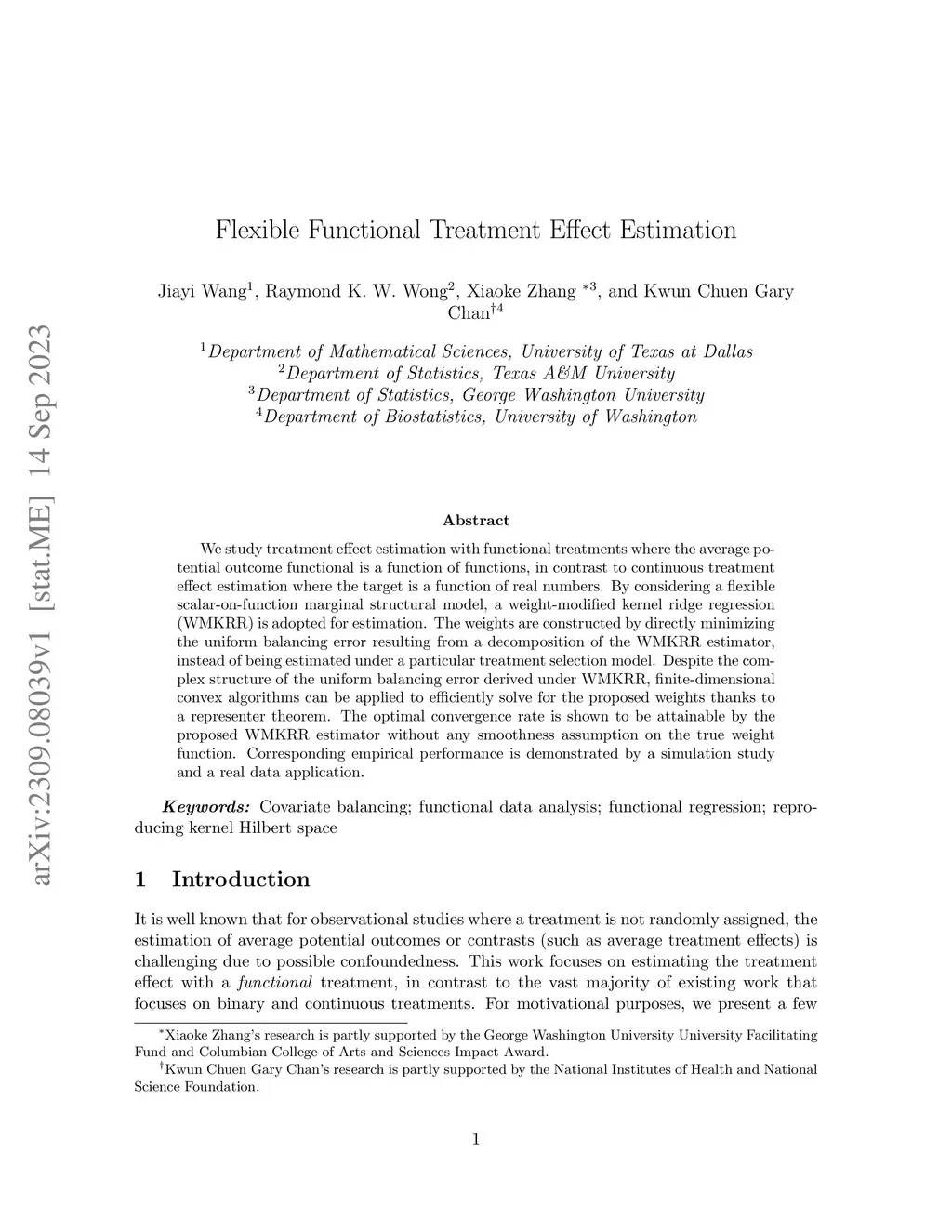 We study treatment effect estimation with functional treatments where the average potential outcome functional is a function of functions, in contrast to continuous treatment effect estimation where the target is a function of real numbers. By considering a flexible scalar-on-function marginal structural model, a weight-modified kernel ridge regression (WMKRR) is adopted for estimation. The weights are constructed by directly minimizing the uniform balancing error resulting from a decomposition of the WMKRR estimator, instead of being estimated under a particular treatment selection model. Despite the complex structure of the uniform balancing error derived under WMKRR, finite-dimensional convex algorithms can be applied to efficiently solve for the proposed weights thanks to a representer theorem. The optimal convergence rate is shown to be attainable by the proposed WMKRR estimator without any smoothness assumption on the true weight function. Corresponding empirical performance is demonstrated by a simulation study and a real data application.