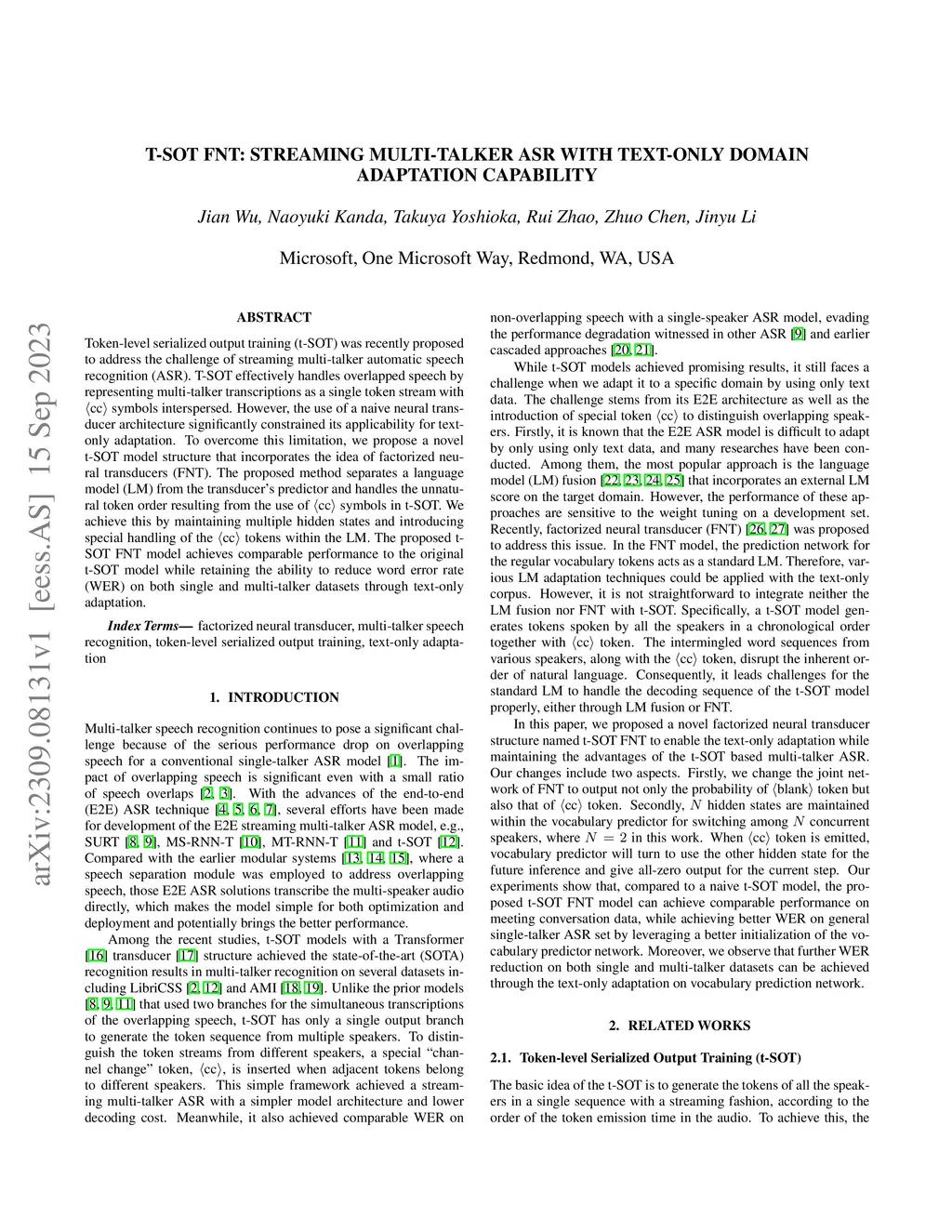 t-SOT FNT: Streaming Multi-talker ASR with Text-only Domain Adaptation