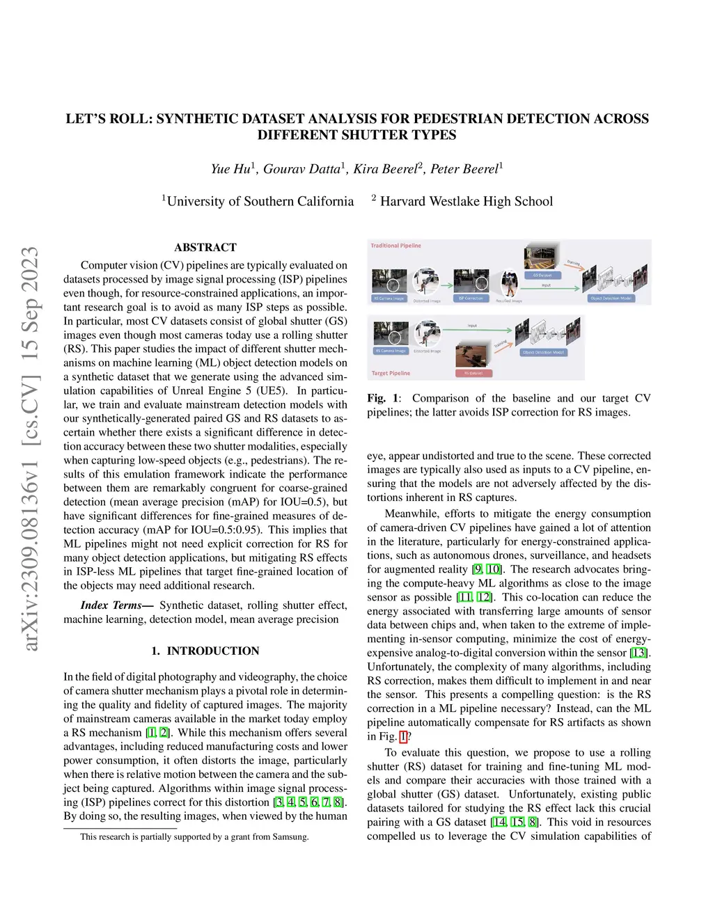 Computer vision (CV) pipelines are typically evaluated on datasets processed by image signal processing (ISP) pipelines even though, for resource-constrained applications, an important research goal is to avoid as many ISP steps as possible. In particular, most CV datasets consist of global shutter (GS) images even though most cameras today use a rolling shutter (RS). This paper studies the impact of different shutter mechanisms on machine learning (ML) object detection models on a synthetic dataset that we generate using the advanced simulation capabilities of Unreal Engine 5 (UE5). In particular, we train and evaluate mainstream detection models with our synthetically-generated paired GS and RS datasets to ascertain whether there exists a significant difference in detection accuracy between these two shutter modalities, especially when capturing low-speed objects (e.g., pedestrians). The results of this emulation framework indicate the performance between them are remarkably congruent for coarse-grained detection (mean average precision (mAP) for IOU=0.5), but have significant differences for fine-grained measures of detection accuracy (mAP for IOU=0.5:0.95). This implies that ML pipelines might not need explicit correction for RS for many object detection applications, but mitigating RS effects in ISP-less ML pipelines that target fine-grained location of the objects may need additional research.