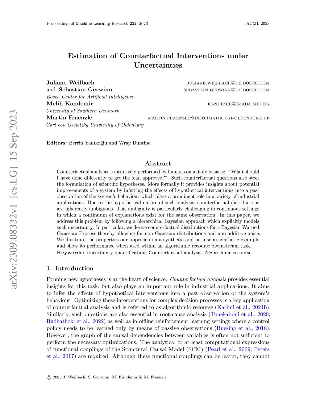 Counterfactual analysis is intuitively performed by humans on a daily basis eg. "What should I have done differently to get the loan approved?". Such counterfactual questions also steer the formulation of scientific hypotheses. More formally it provides insights about potential improvements of a system by inferring the effects of hypothetical interventions into a past observation of the system's behaviour which plays a prominent role in a variety of industrial applications. Due to the hypothetical nature of such analysis, counterfactual distributions are inherently ambiguous. This ambiguity is particularly challenging in continuous settings in which a continuum of explanations exist for the same observation. In this paper, we address this problem by following a hierarchical Bayesian approach which explicitly models such uncertainty. In particular, we derive counterfactual distributions for a Bayesian Warped Gaussian Process thereby allowing for non-Gaussian distributions and non-additive noise. We illustrate the properties our approach on a synthetic and on a semi-synthetic example and show its performance when used within an algorithmic recourse downstream task.