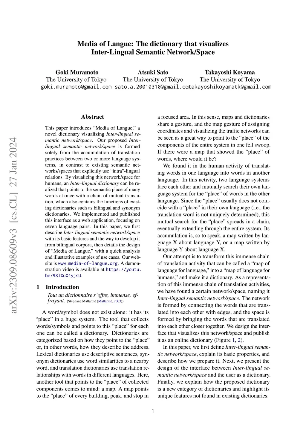Media of Langue: The dictionary that visualizes Inter-Lingual Semantic