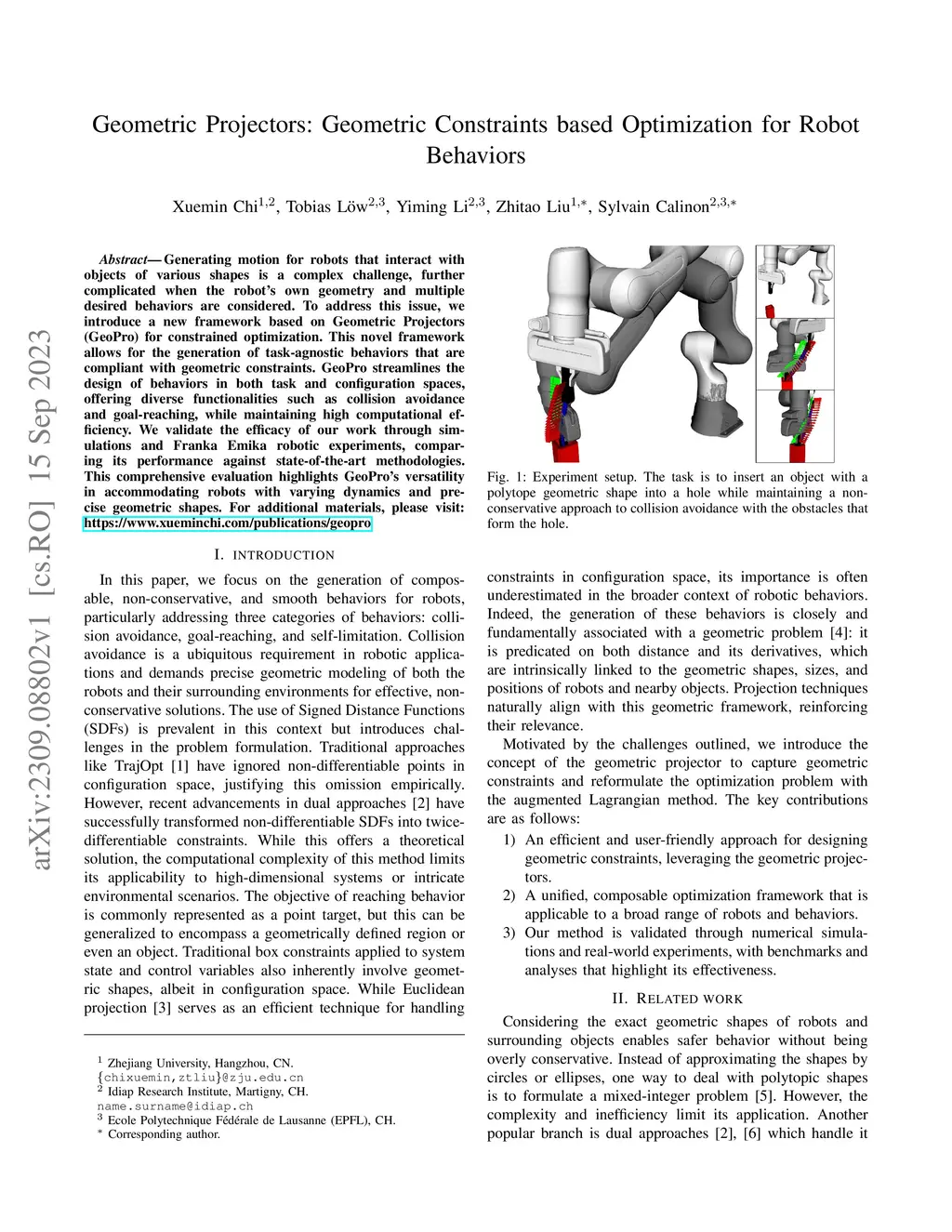 Geometric Projectors: Geometric Constraints based Optimization for Robot