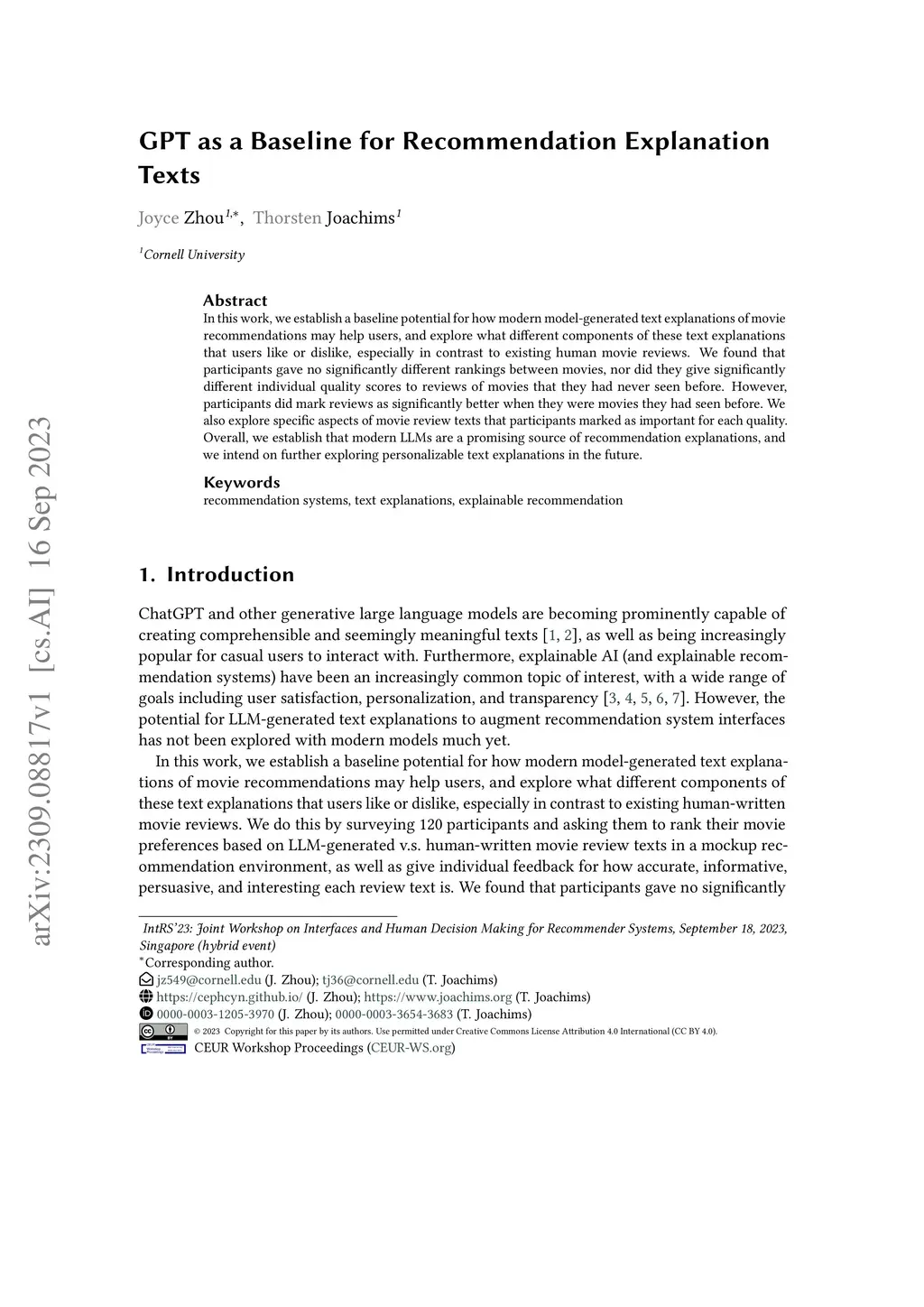 GPT as a Baseline for Recommendation Explanation Texts