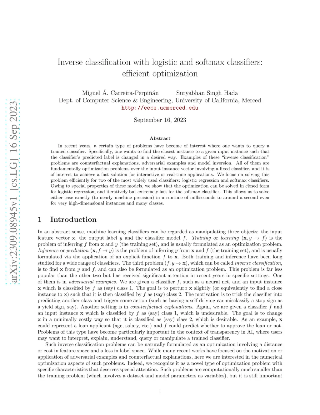 In recent years, a certain type of problems have become of interest where one wants to query a trained classifier. Specifically, one wants to find the closest instance to a given input instance such that the classifier's predicted label is changed in a desired way. Examples of these ``inverse classification'' problems are counterfactual explanations, adversarial examples and model inversion. All of them are fundamentally optimization problems over the input instance vector involving a fixed classifier, and it is of interest to achieve a fast solution for interactive or real-time applications. We focus on solving this problem efficiently for two of the most widely used classifiers: logistic regression and softmax classifiers. Owing to special properties of these models, we show that the optimization can be solved in closed form for logistic regression, and iteratively but extremely fast for the softmax classifier. This allows us to solve either case exactly (to nearly machine precision) in a runtime of milliseconds to around a second even for very high-dimensional instances and many classes.