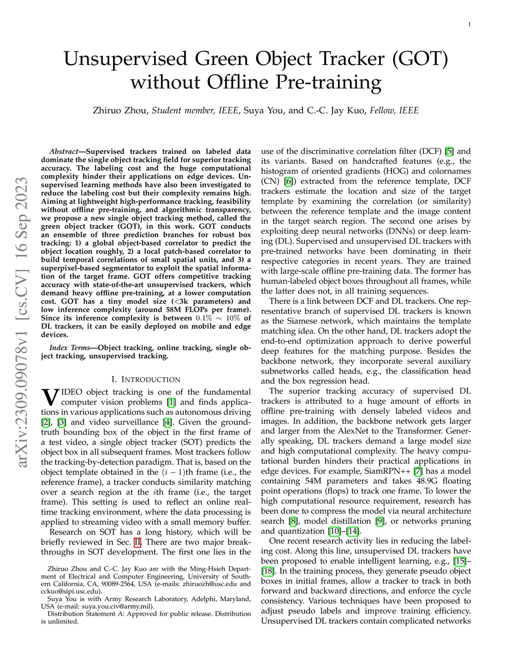 Unsupervised Green Object Tracker (GOT) without Offline Pre-training