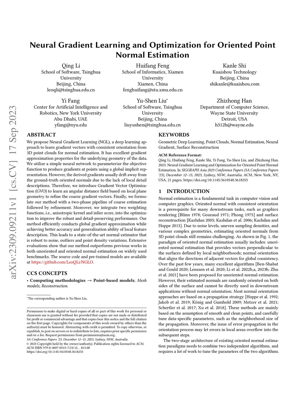 Neural Gradient Learning and Optimization for Oriented Point Normal