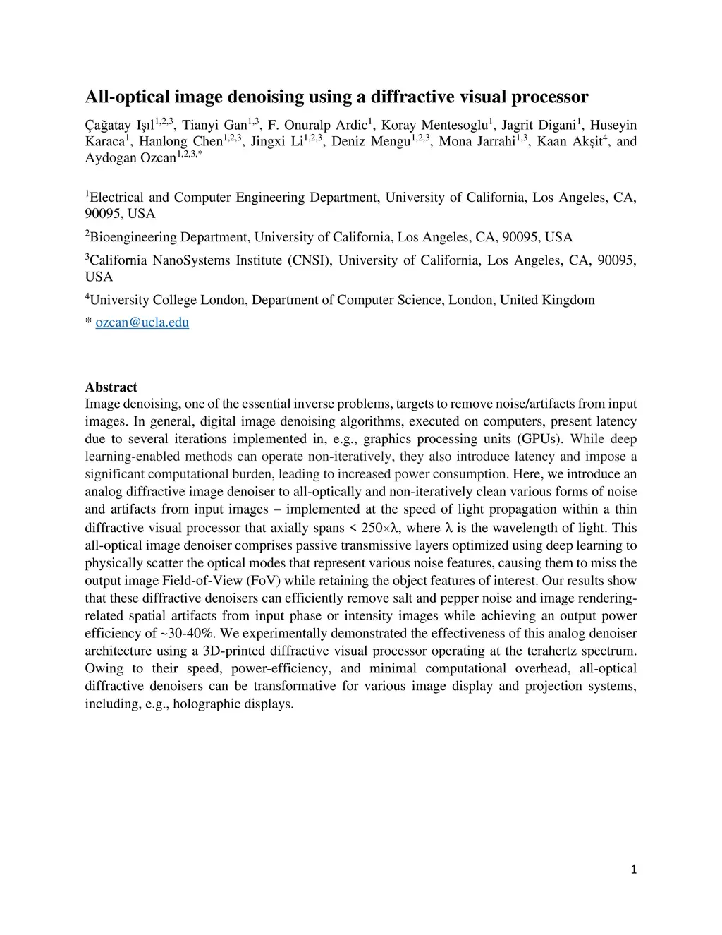 All-optical image denoising using a diffractive visual processor