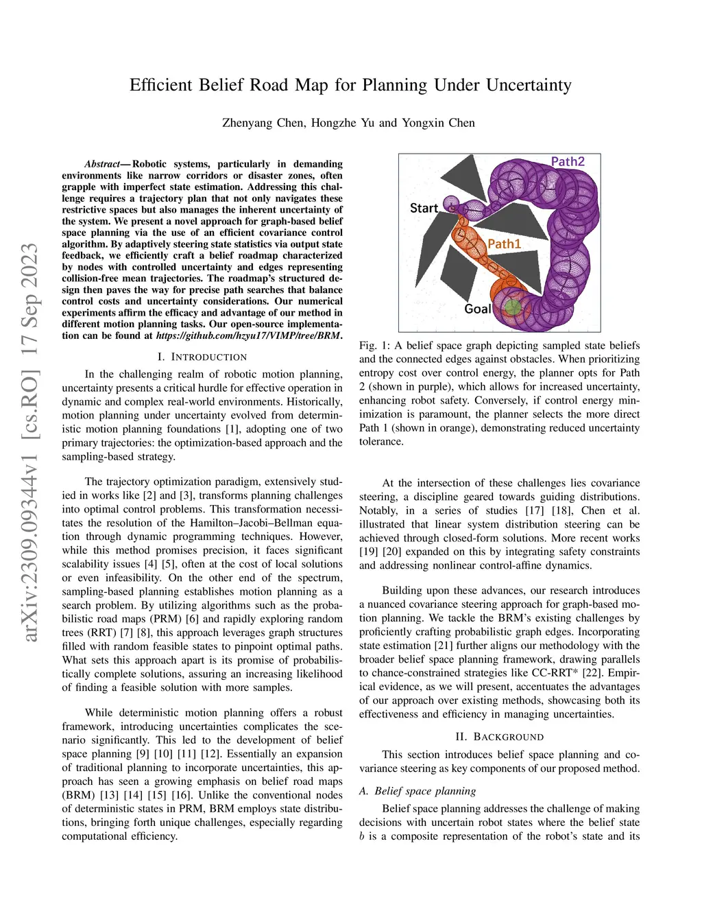 Efficient Belief Road Map for Planning Under Uncertainty