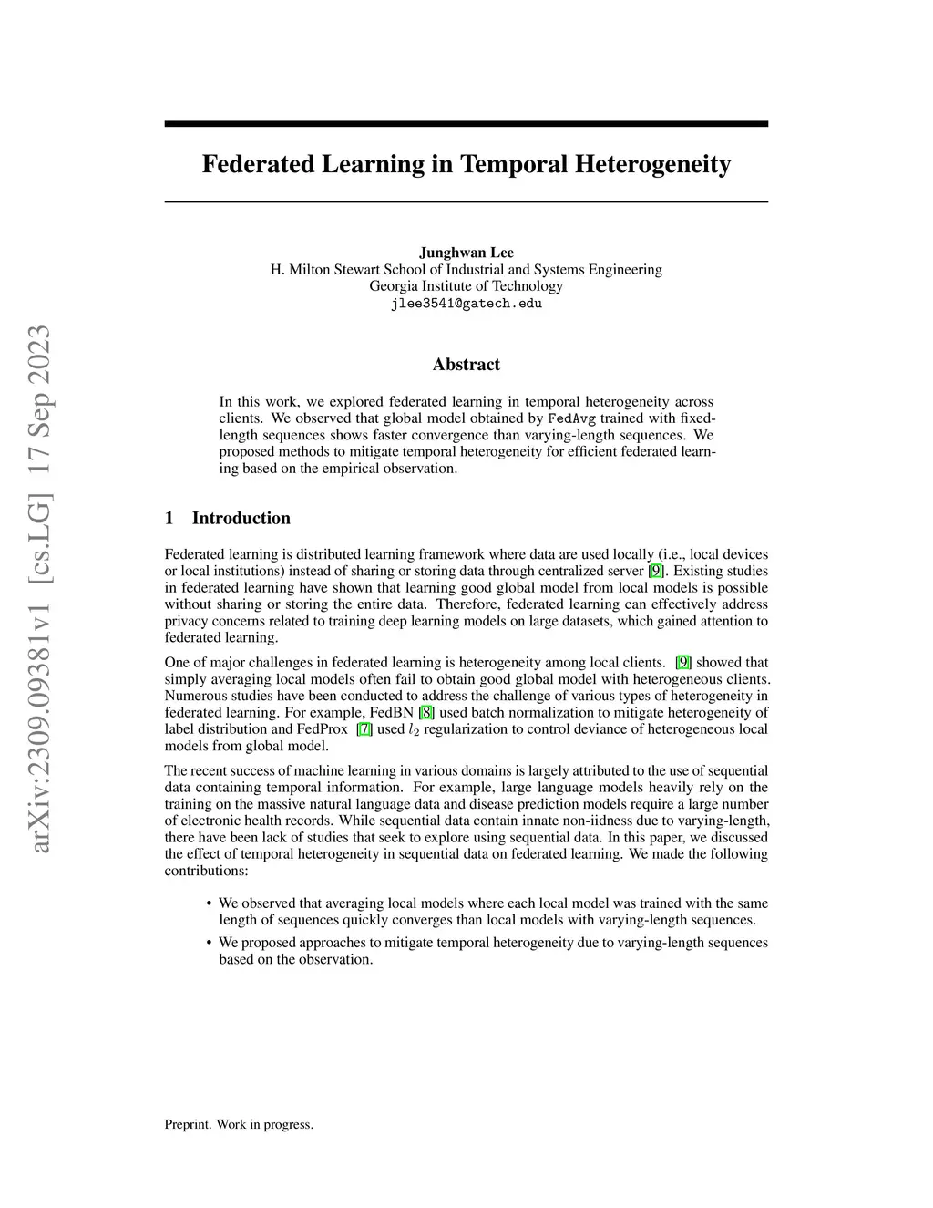 In this work, we explored federated learning in temporal heterogeneity across clients. We observed that global model obtained by \texttt{FedAvg} trained with fixed-length sequences shows faster convergence than varying-length sequences. We proposed methods to mitigate temporal heterogeneity for efficient federated learning based on the empirical observation.