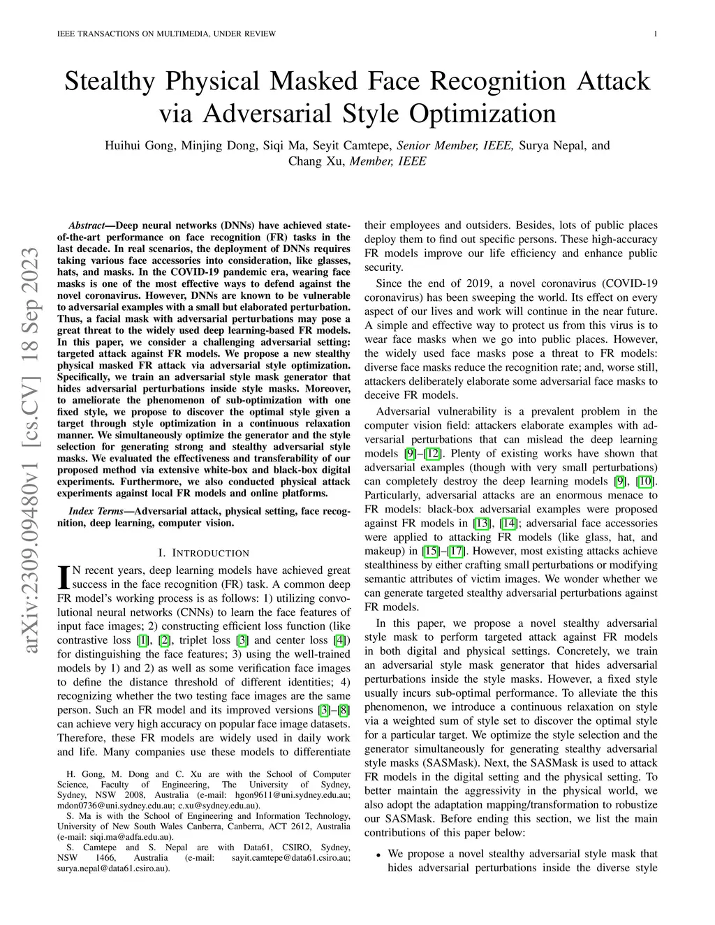 Stealthy Physical Masked Face Recognition Attack via Adversarial Style