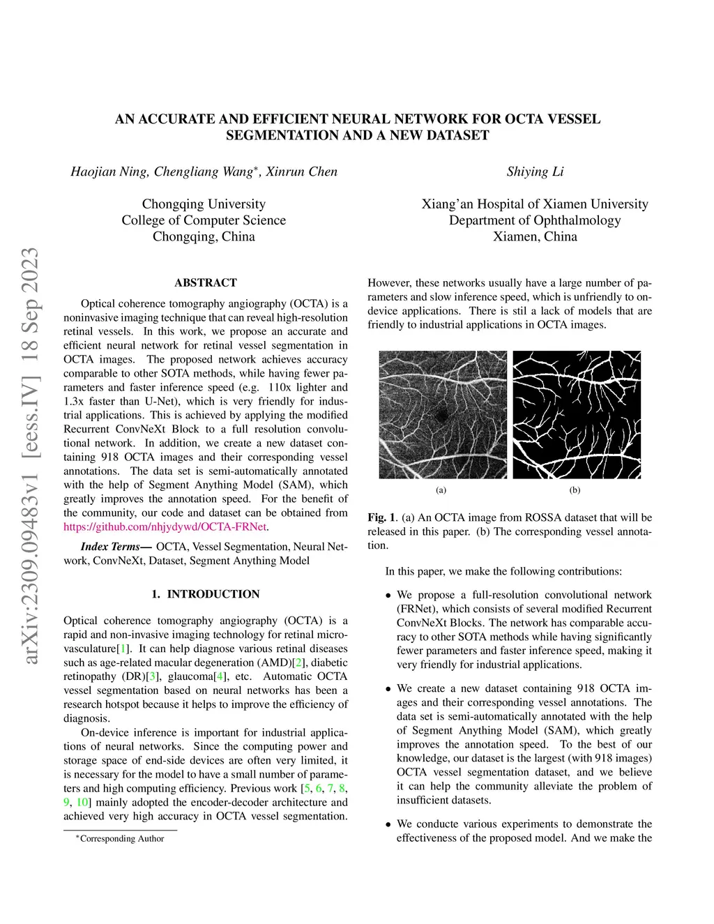 An Accurate and Efficient Neural Network for OCTA Vessel Segmentation