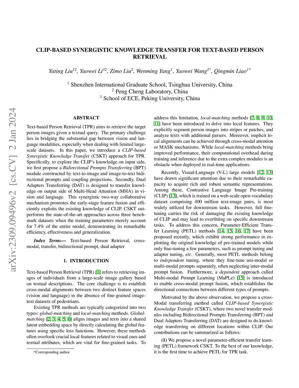 CLIP-based Synergistic Knowledge Transfer for Text-based Person