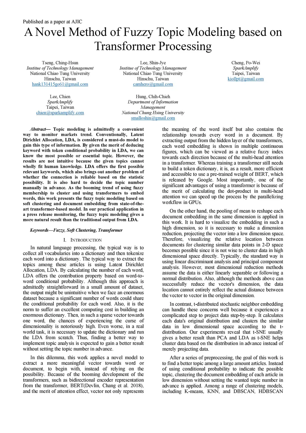 A Novel Method of Fuzzy Topic Modeling based on Transformer Processing