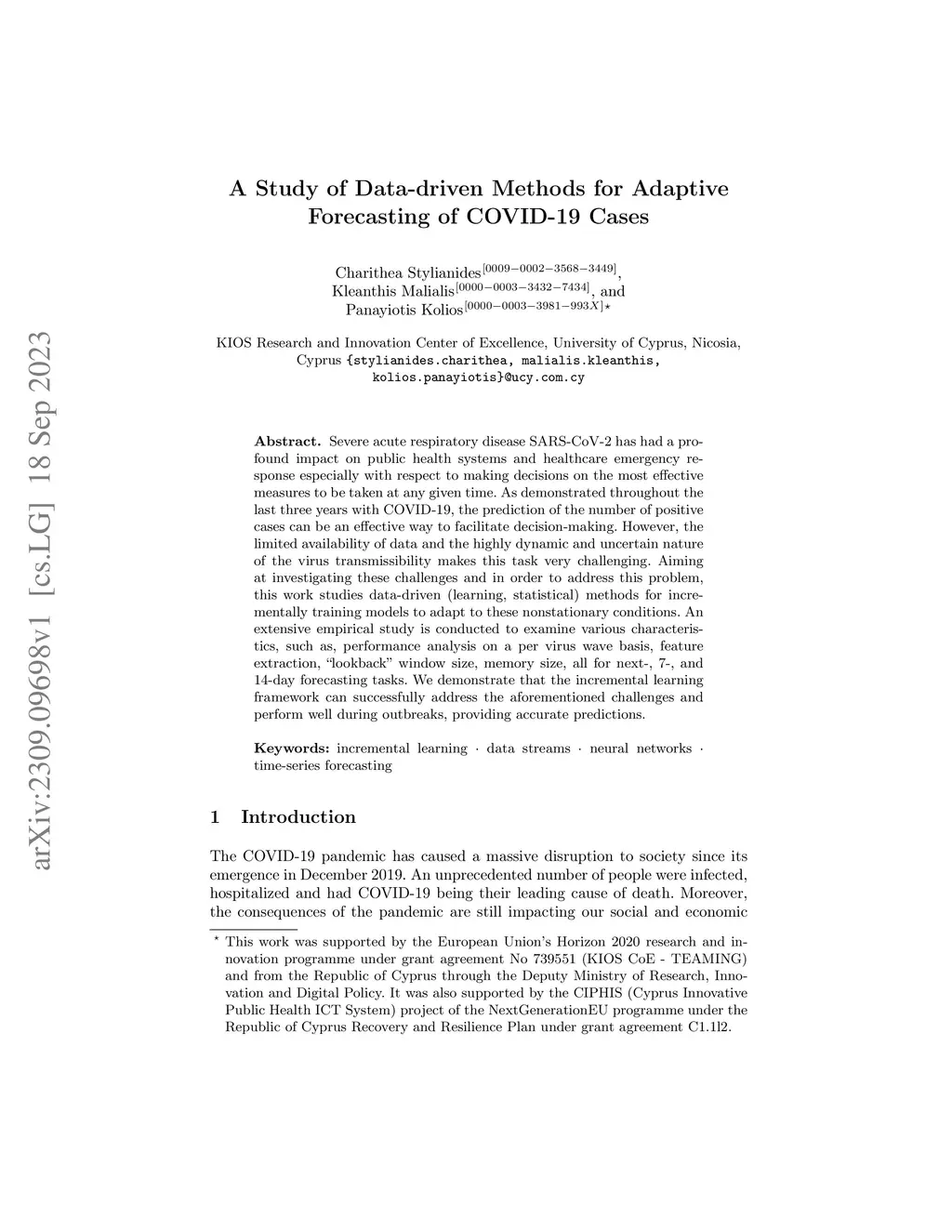 Severe acute respiratory disease SARS-CoV-2 has had a found impact on public health systems and healthcare emergency response especially with respect to making decisions on the most effective measures to be taken at any given time. As demonstrated throughout the last three years with COVID-19, the prediction of the number of positive cases can be an effective way to facilitate decision-making. However, the limited availability of data and the highly dynamic and uncertain nature of the virus transmissibility makes this task very challenging. Aiming at investigating these challenges and in order to address this problem, this work studies data-driven (learning, statistical) methods for incrementally training models to adapt to these nonstationary conditions. An extensive empirical study is conducted to examine various characteristics, such as, performance analysis on a per virus wave basis, feature extraction, "lookback" window size, memory size, all for next-, 7-, and 14-day forecasting tasks. We demonstrate that the incremental learning framework can successfully address the aforementioned challenges and perform well during outbreaks, providing accurate predictions.
