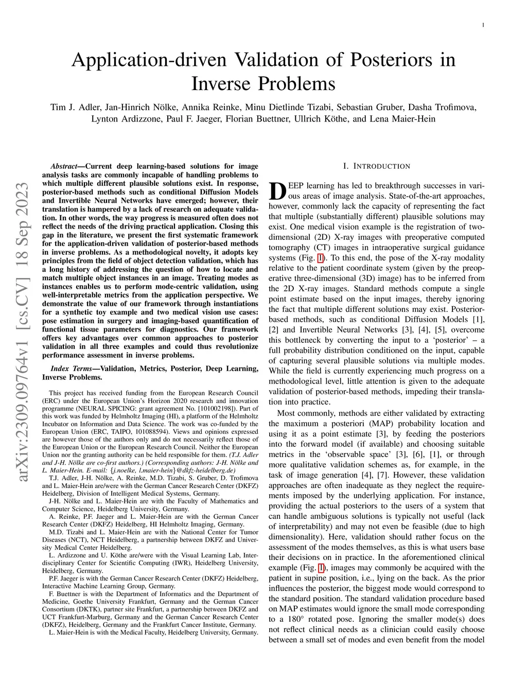 Current deep learning-based solutions for image analysis tasks are commonly incapable of handling problems to which multiple different plausible solutions exist. In response, posterior-based methods such as conditional Diffusion Models and Invertible Neural Networks have emerged; however, their translation is hampered by a lack of research on adequate validation. In other words, the way progress is measured often does not reflect the needs of the driving practical application. Closing this gap in the literature, we present the first systematic framework for the application-driven validation of posterior-based methods in inverse problems. As a methodological novelty, it adopts key principles from the field of object detection validation, which has a long history of addressing the question of how to locate and match multiple object instances in an image. Treating modes as instances enables us to perform mode-centric validation, using well-interpretable metrics from the application perspective. We demonstrate the value of our framework through instantiations for a synthetic toy example and two medical vision use cases: pose estimation in surgery and imaging-based quantification of functional tissue parameters for diagnostics. Our framework offers key advantages over common approaches to posterior validation in all three examples and could thus revolutionize performance assessment in inverse problems.